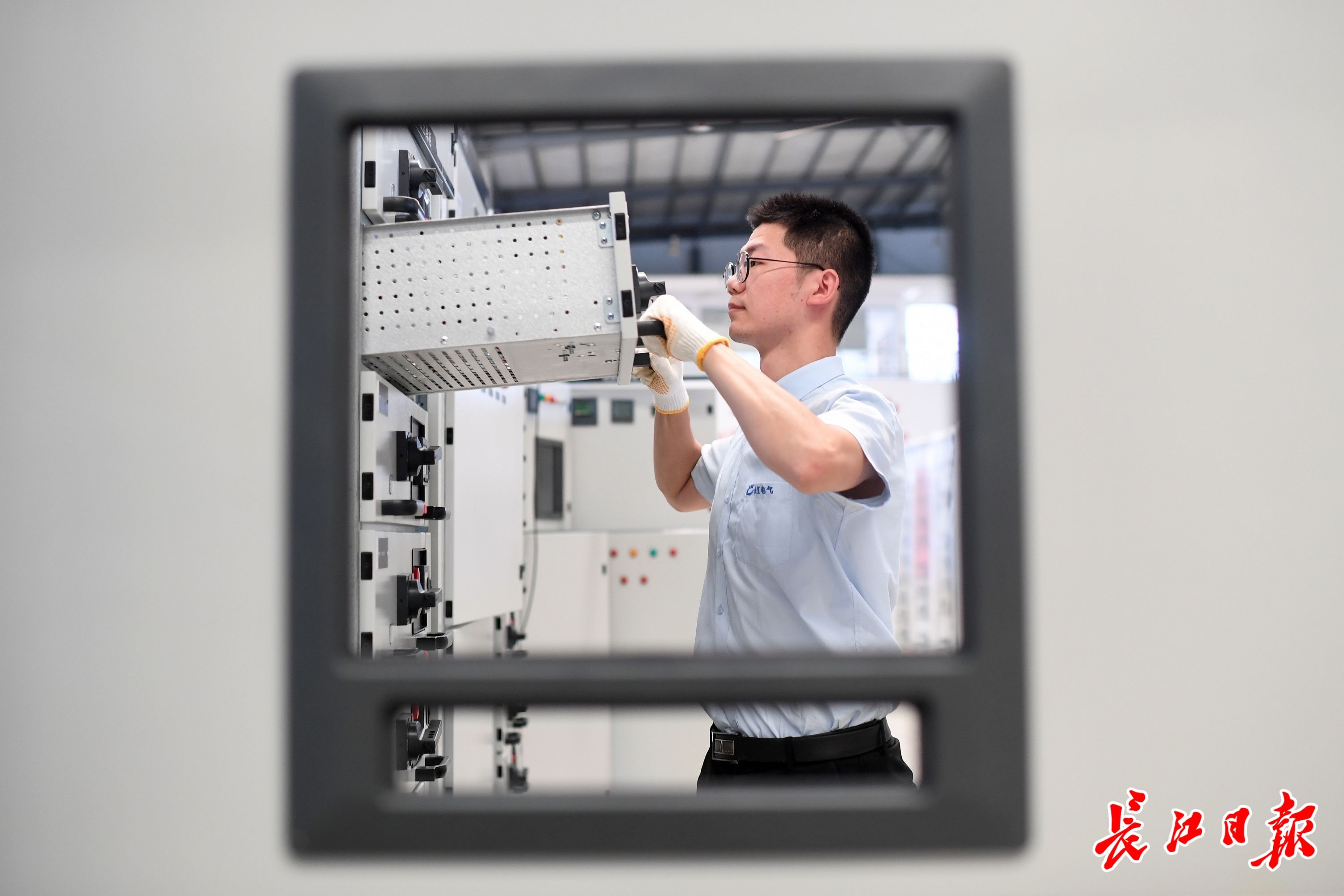 23日,长江电气一线员工张文龙正检测即将出厂的智能配电柜抽屉。长江日报记者周超 摄