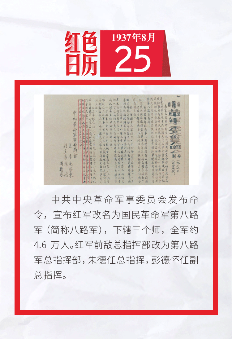红军改名为国民革命军第八路军|红色日历