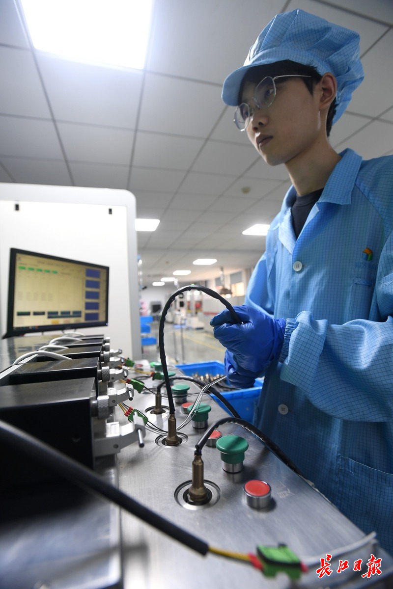 四方光电生产车间,研发生产人员正进行高温氧气传感器测试。长江日报记者周超 摄
