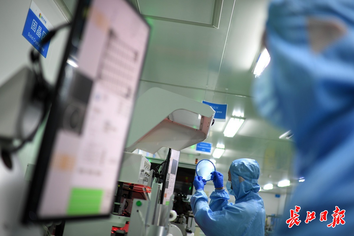 四方光电芯片车间,研发生产人员正进行激光器芯片的固晶程序。长江日报记者周超 摄