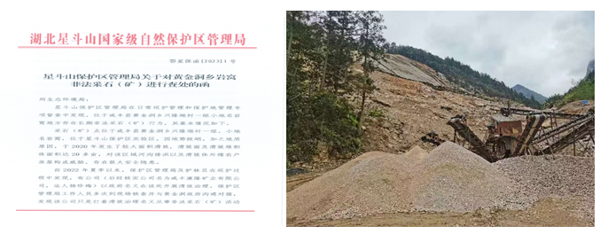 恩施州生态环境部门根据湖北星斗山国家级自然保护区管理局移交函,对某矿业有限公司在星斗山国家级自然保护区内建设的矿石破碎生产项目进行查处。
