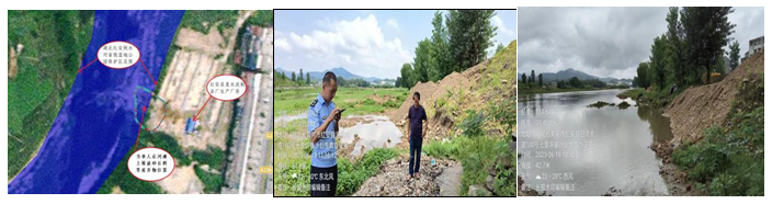 2023年6月13日,红安县生态环境保护综合执法大队执法人员在对湖北红安倒水河省级湿地公园进行巡查时,发现某水泥制品厂在倒水河湿地保护区内的滩地堆放土砂石等固体废弃物。