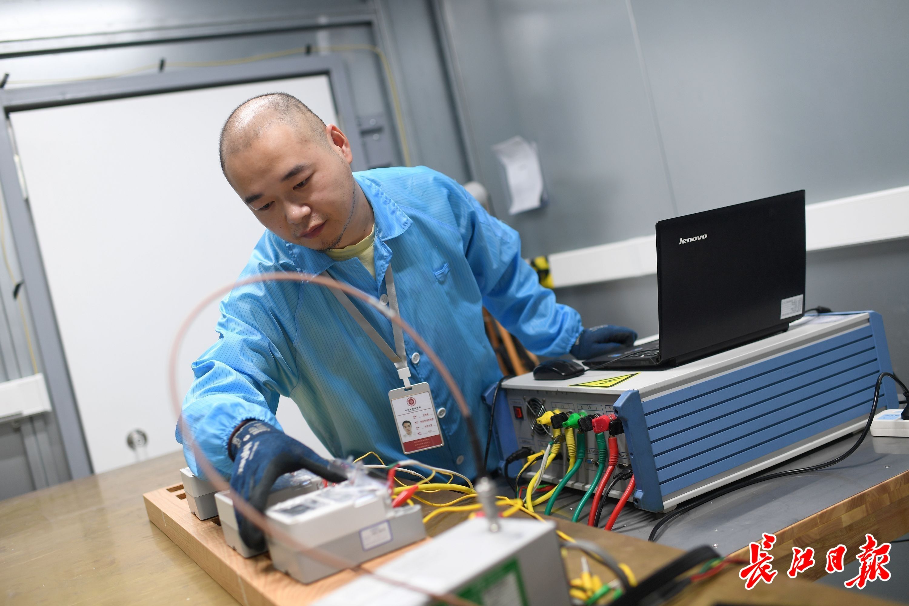 28日,位于东湖高新区武汉大学科技园的武汉中关村中试测试实验室,工作人员正对企业送来的电表提供检测服务。长江日报记者周超 摄