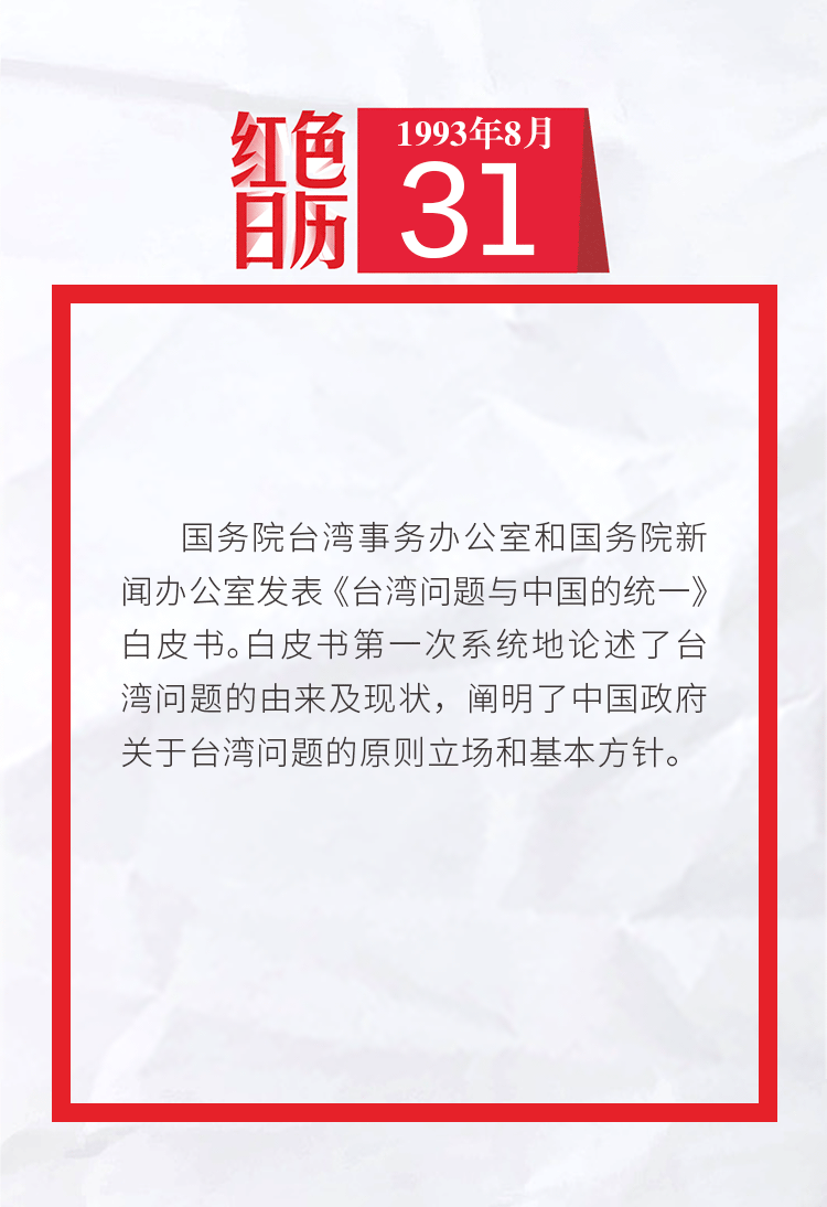 《台湾问题与中国的统一》白皮书发表|红色日历