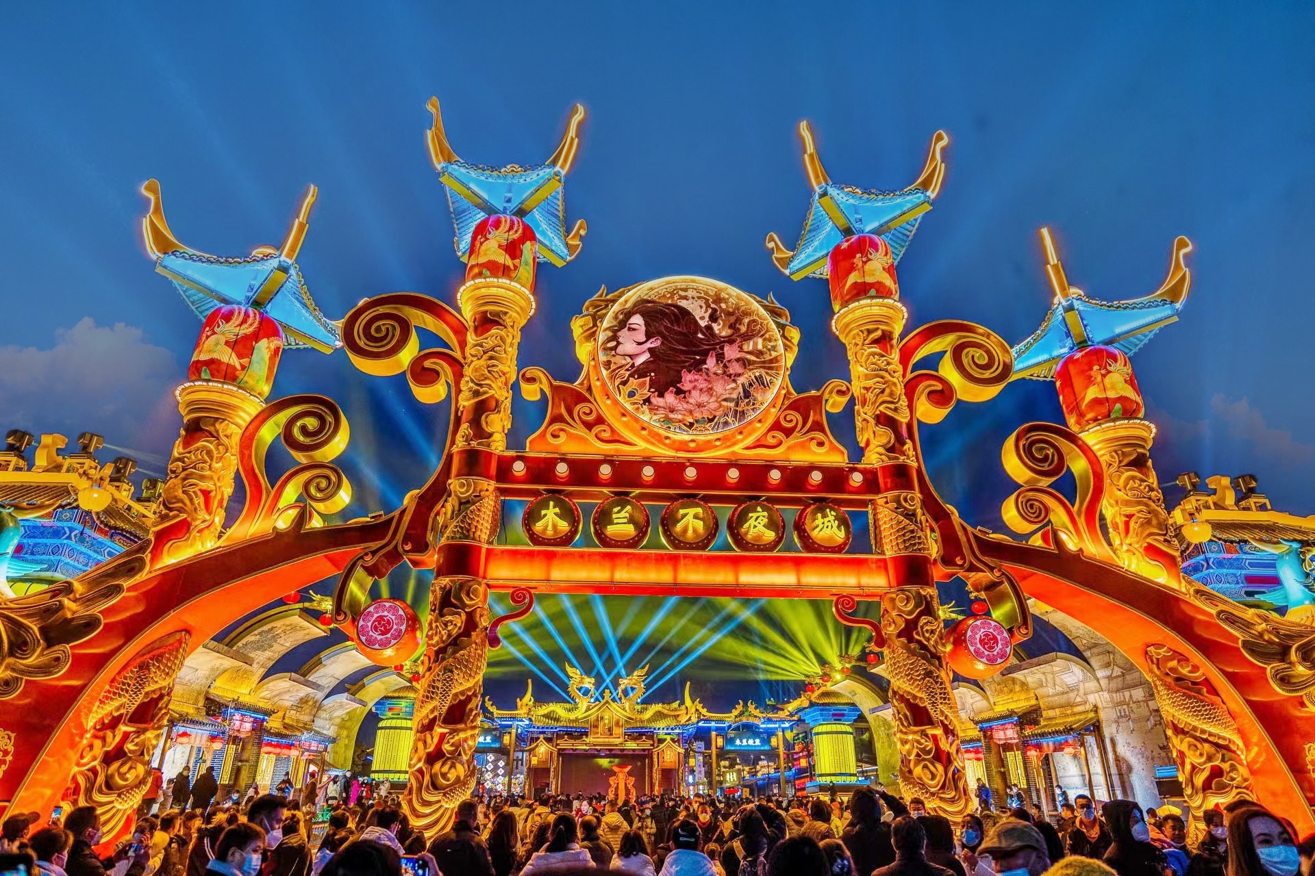 黄陂木兰花乡景区木兰不夜城人气火爆。