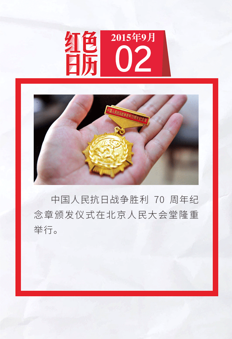 中国人民抗日战争胜利70周年纪念章颁发仪式举行|红色日历
