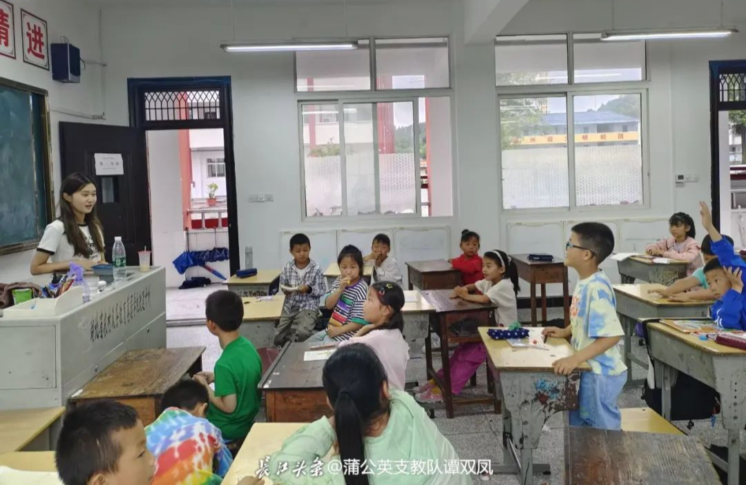 湖北第二师范学院“蒲公英计划”支教队成员在乡村小学支教。长江头条用户@蒲公英支教队谭双凤 供图