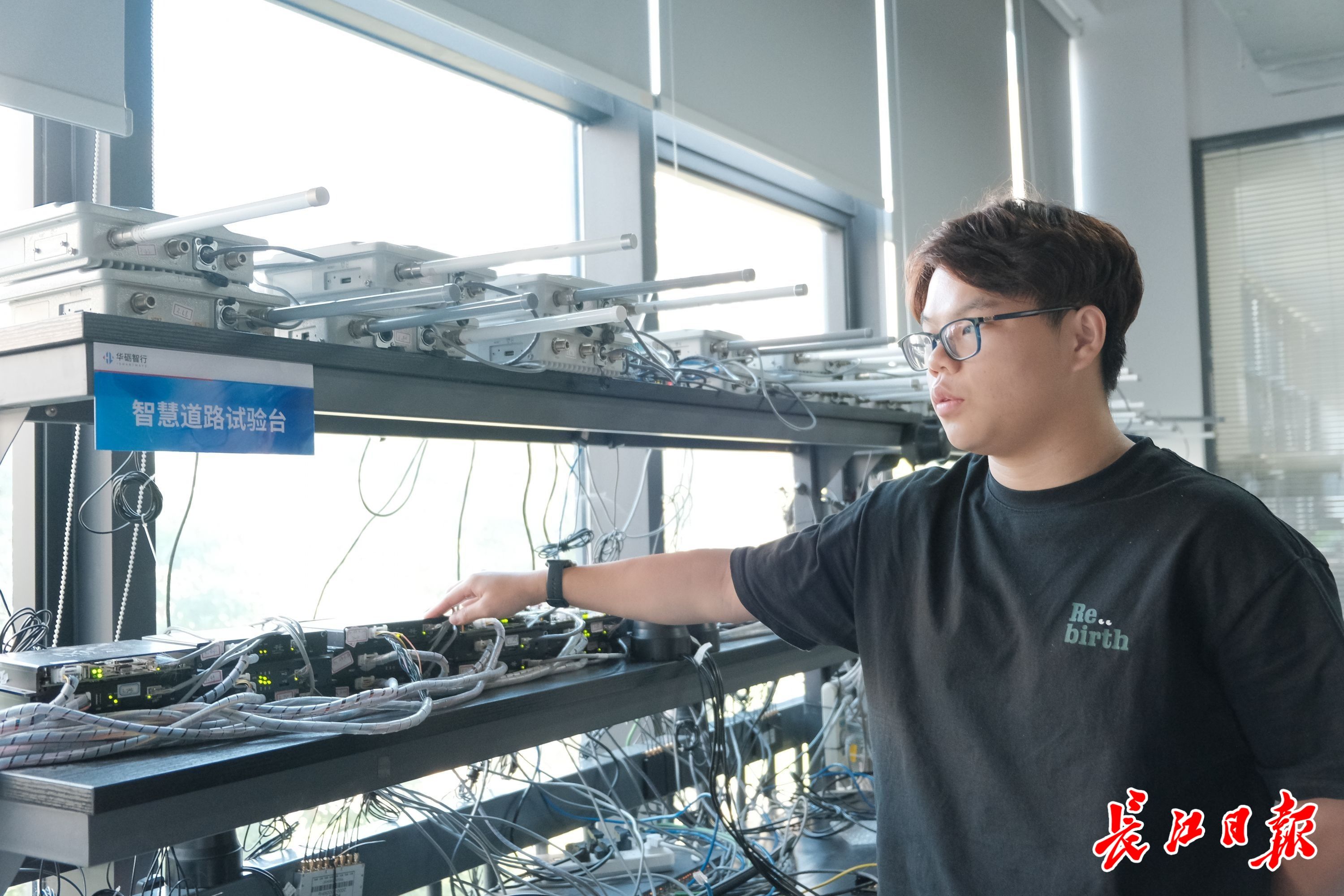 图为工作人员正在华砺智行办公区的智慧交通测试台旁工作。实习生肖怡珂 摄