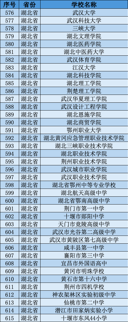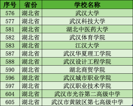 湖北此次有40所院校入围,其中12所在武汉,具体名单如下: