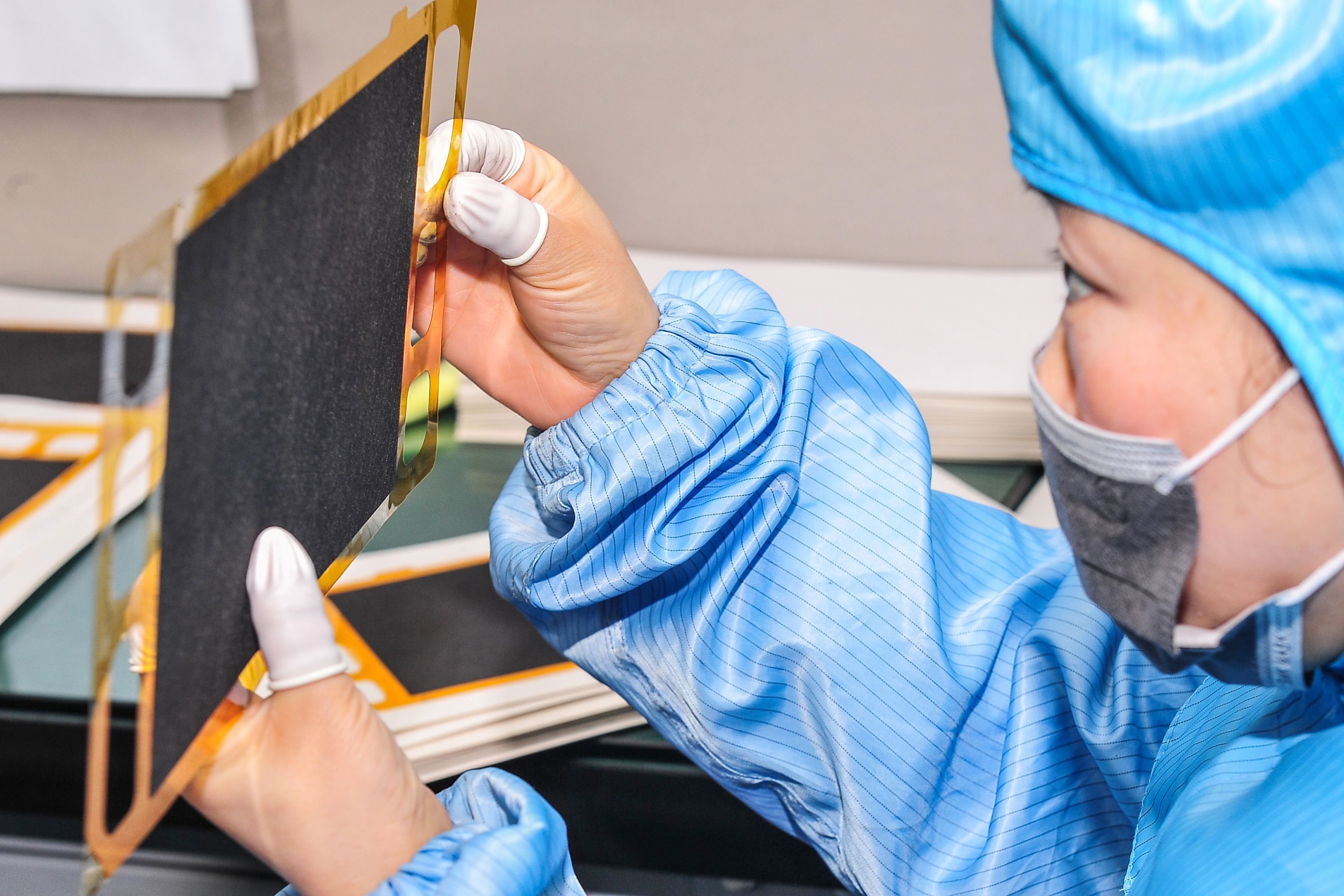 走进武汉理工氢电的无尘车间,一片片薄如报纸的黑色薄膜在调浆站、涂布机、封装站等智能化自动化生产设备配合下,来回穿梭、组装、打包,整装待发。