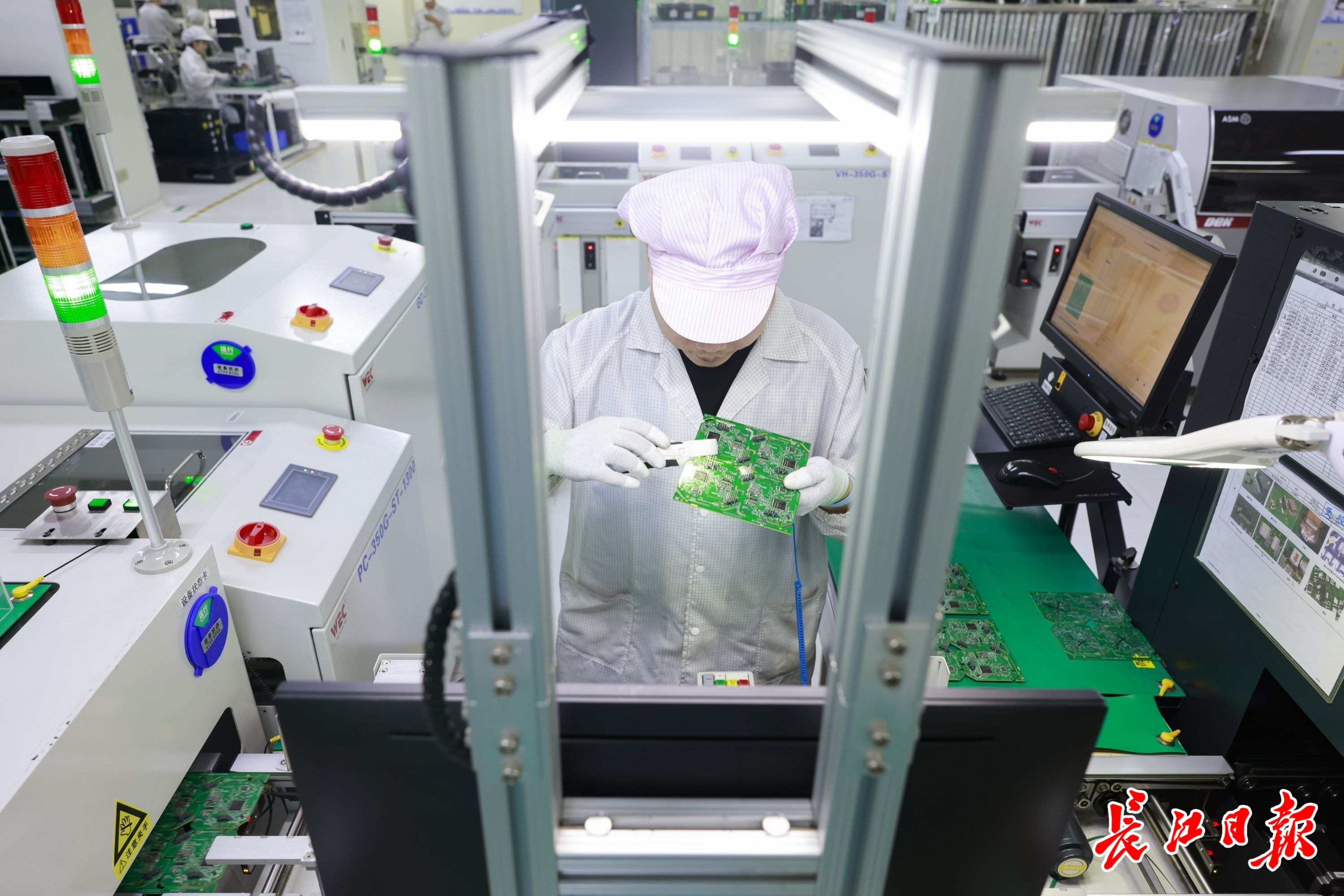 楚冠捷工作人员正在使用电脑操作产线设备。长江日报记者胡冬冬 摄