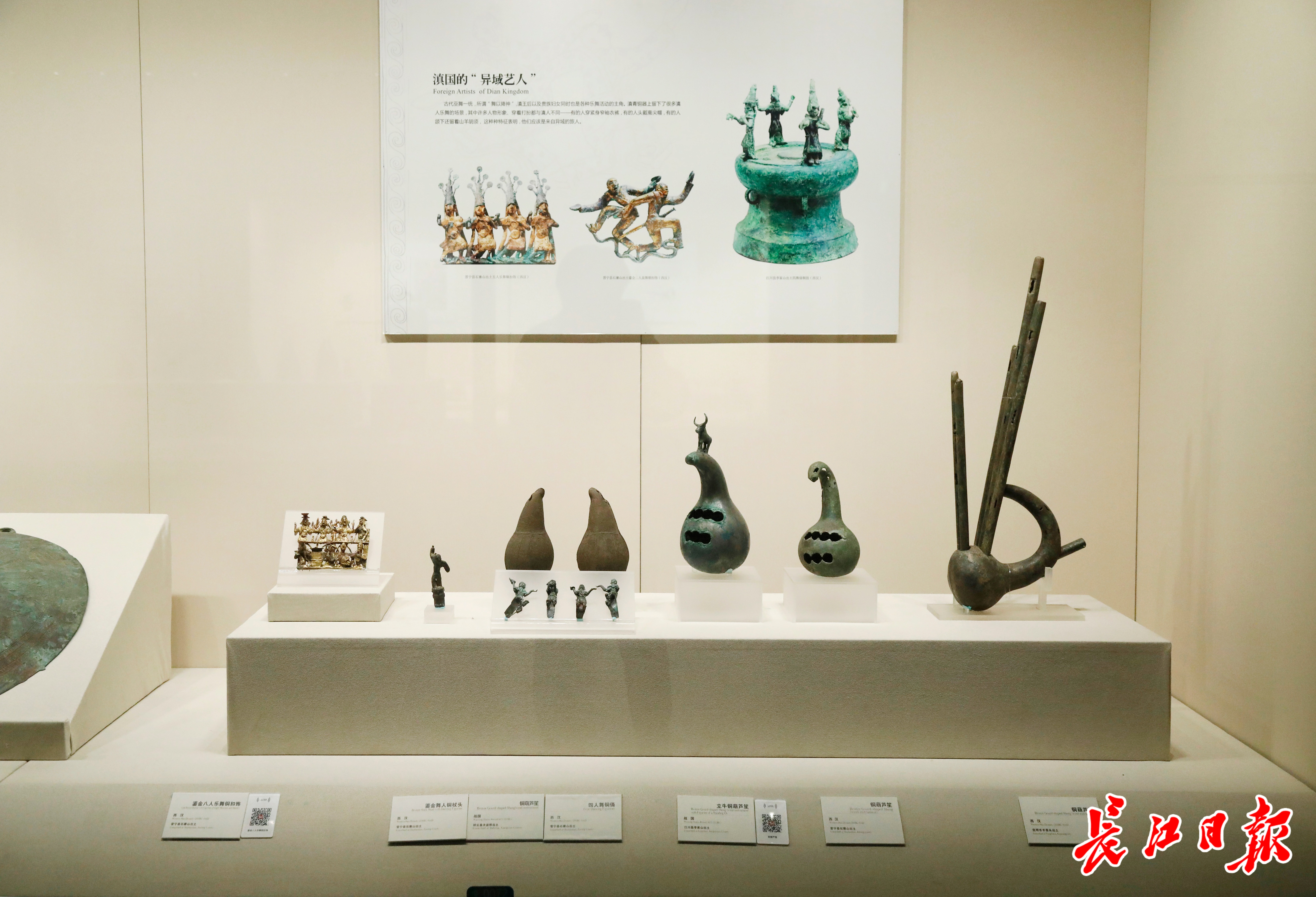 云南省博物馆内陈列有铜葫芦笙的展柜。 王筝 摄