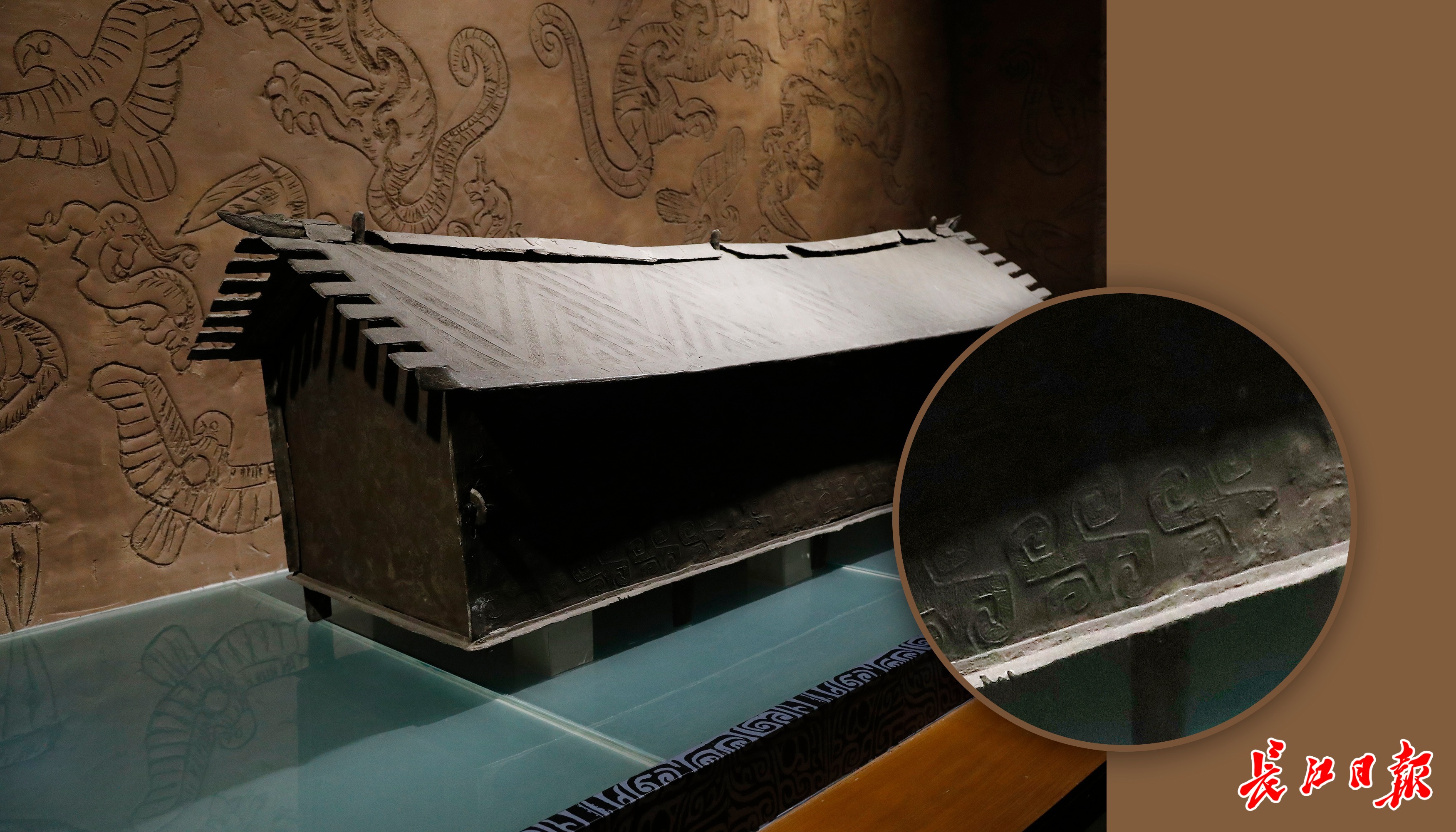 祥云大波那廓铜棺及其两侧装饰的云雷纹细节。 王筝 摄