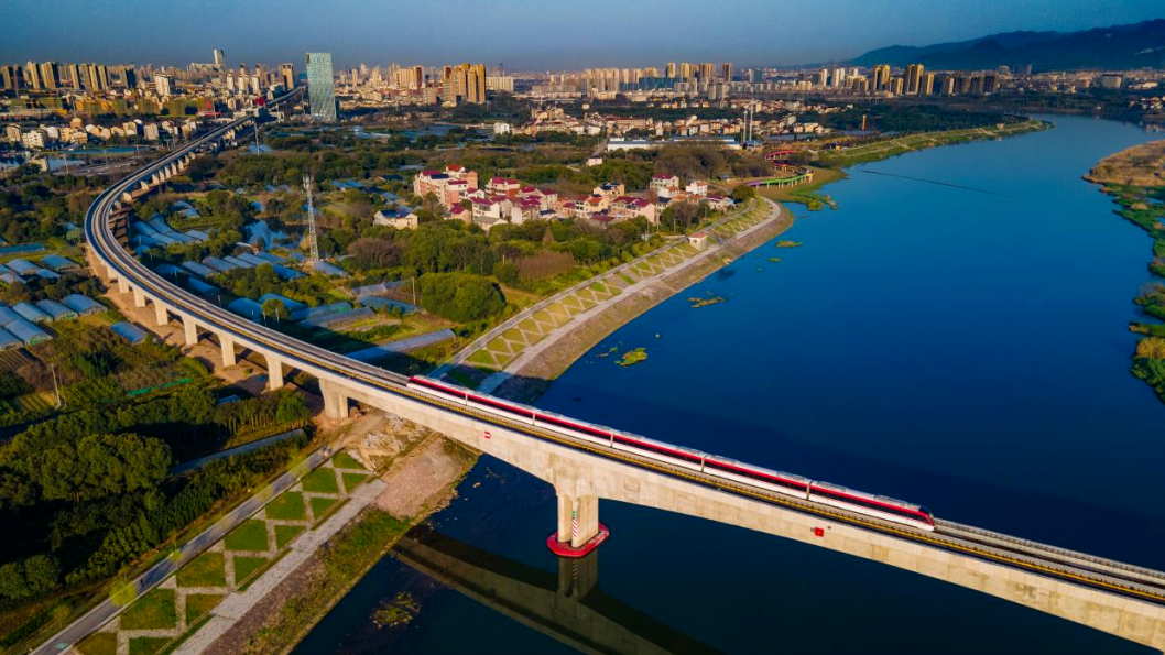 金义东市域轨道交通工程是浙江省中部地区重要的大容量公共交通工程,也是中国一次性建成里程最长的市域轨道交通工程。该线路构建了金华、义乌、东阳“1小时快速便捷交通圈”。铁四院从满足城市、乡村的协同发展需求出发,因地制宜地规划线路和车站分布方案,合理敷设高架区间和地下区间,与国铁、市政及开发项目节地共建,并将投资有效控制到同类项目最低。研发了高架车站外立面和地下车站出入口多项装配式绿色建造专利技术,工业化生产提高了构件质量,改善了施工环境,减少了废料排放,建设周期缩短50%,减少了施工期对周边居民的干扰。