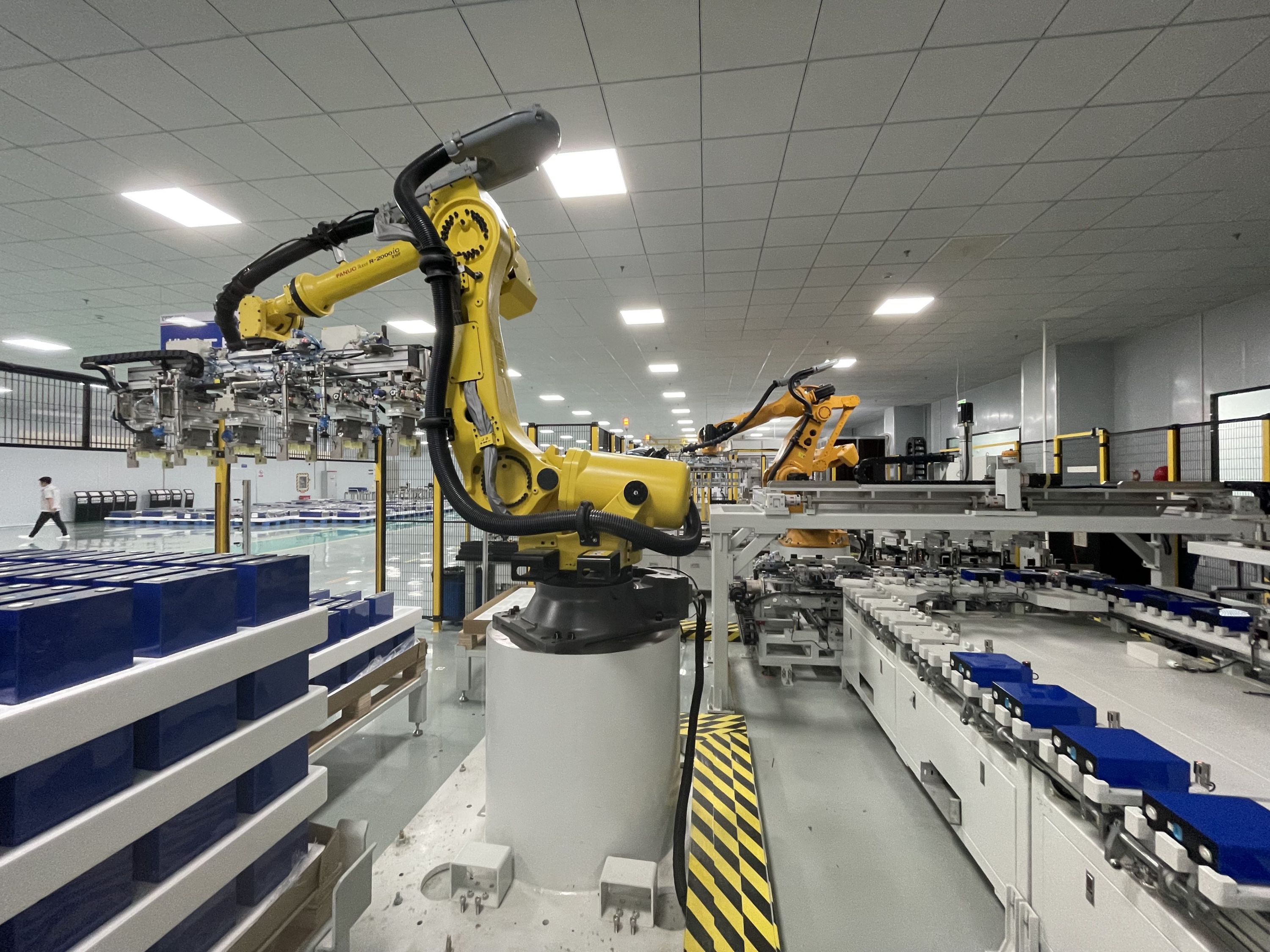 在位于江夏的中能建储能科技(武汉)有限公司(以下简称“中储科技”)智能化产线上,6轴机器人正在高举轻放、快速作业。