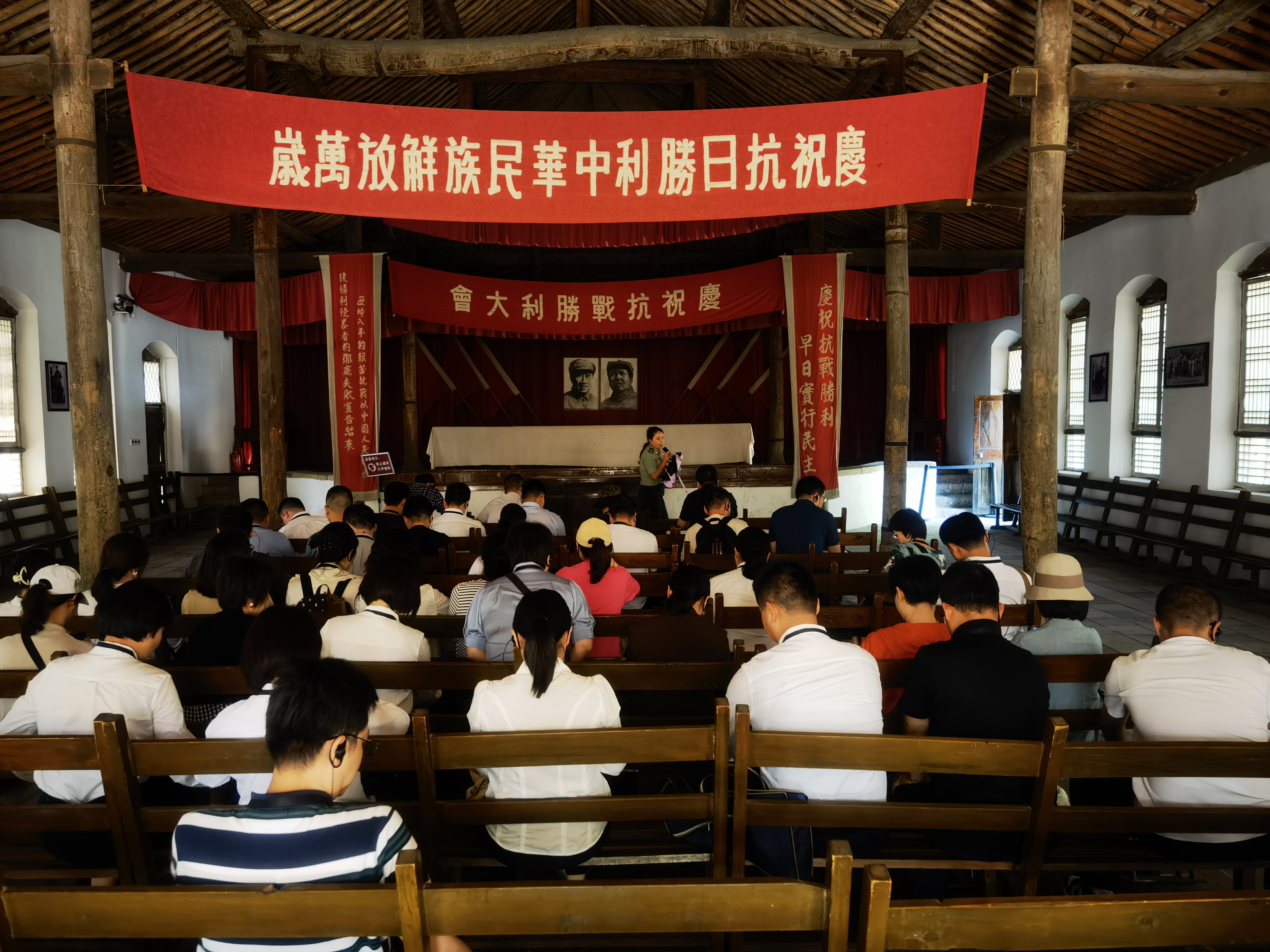 学员们在延安王家坪革命旧址军委礼堂参观学习。 (市委党校 供图)