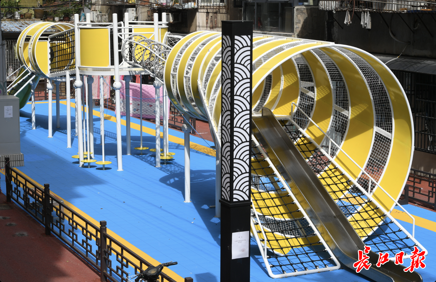 去年9月,江汉区北湖路、北湖正街以及北湖街道环保社区开始了道路、小区环境的改造,全力打造“花漾街区”。环保社区是江汉区园林部门牵头实施的老旧小区改造提升项目之一。今年9月2日,项目正式完工,开阔的活动广场、古色古香的凉亭以及百余平方米的儿童游乐区,让居民们十分满意。