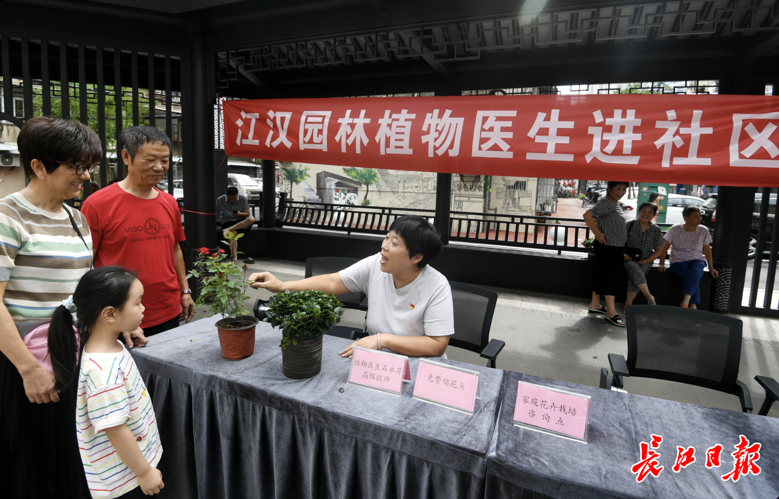 居民向“植物医生”请教如何养花。长江日报记者 李子云 摄