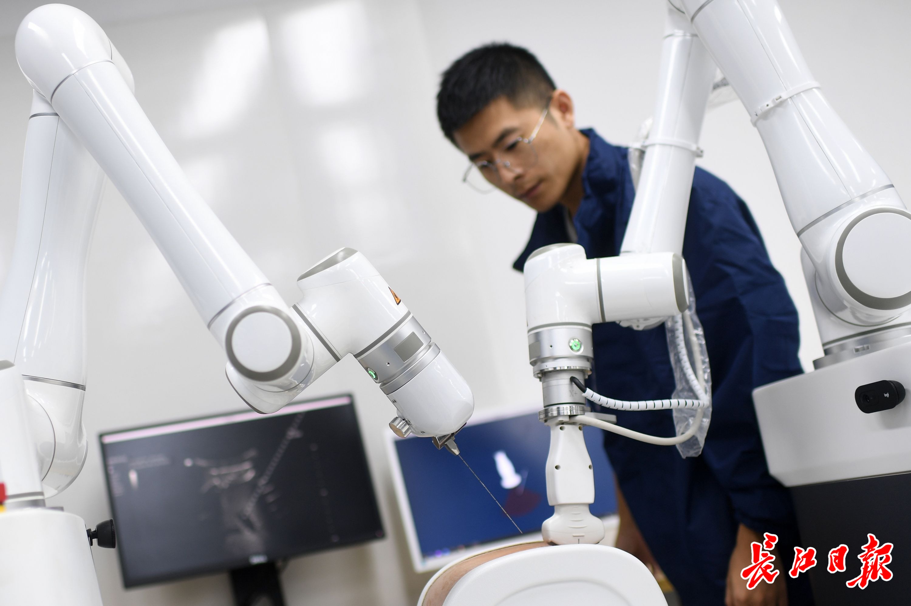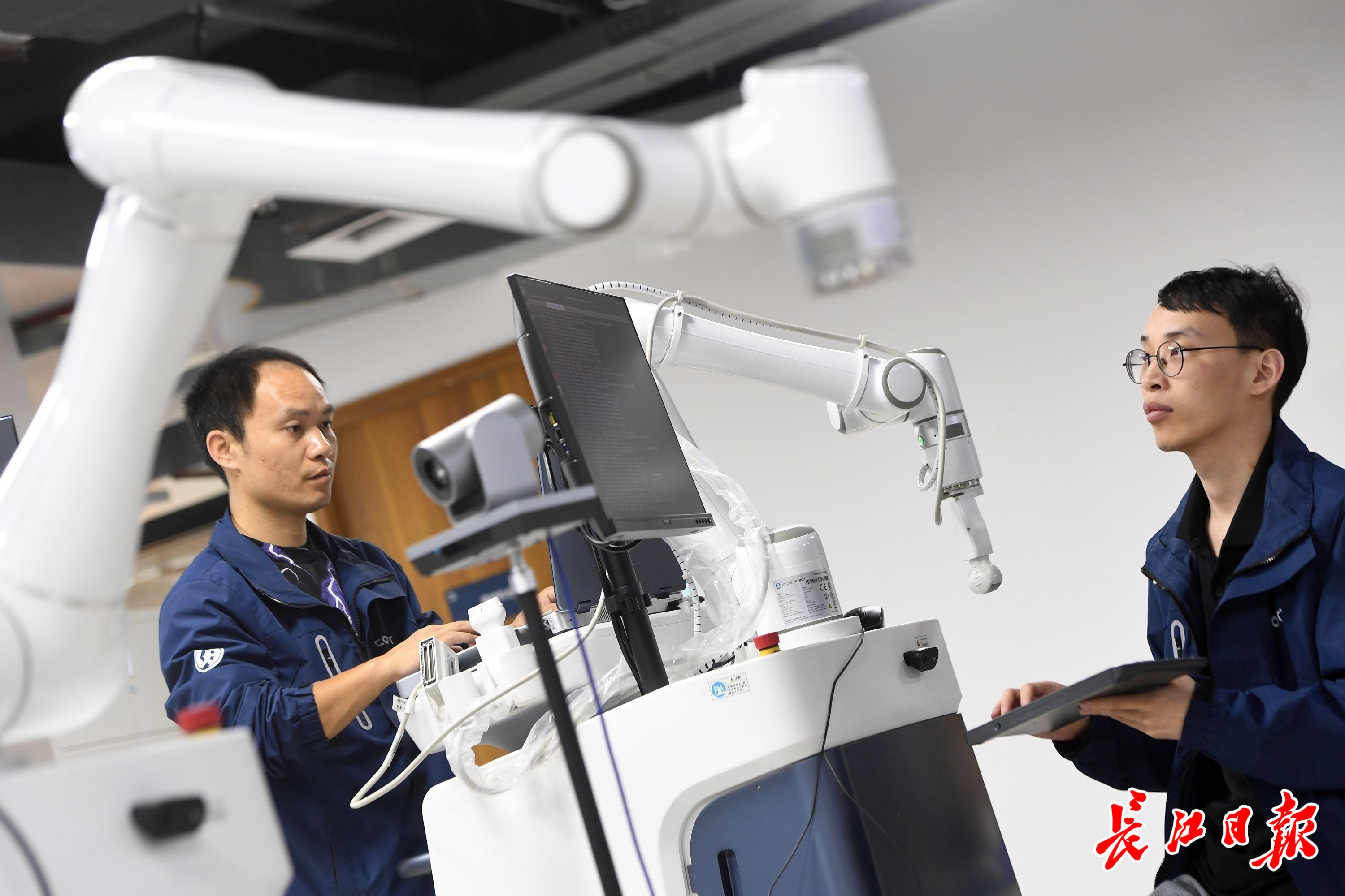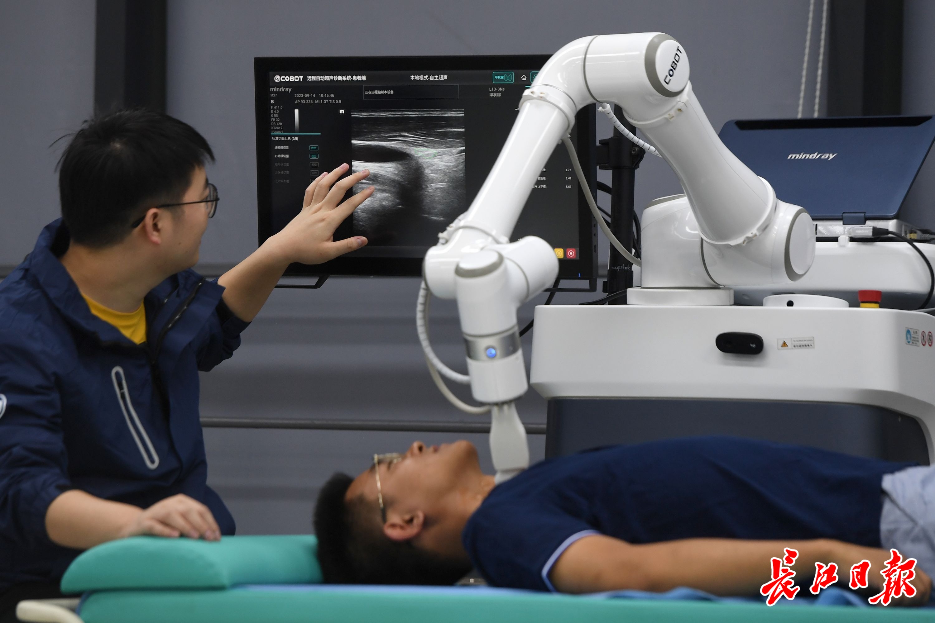 长江日报大武汉客户端9月19日讯 在医生没在场的情况下,机械臂以专家操作手法进行全自动超声流程化扫查,实时采集标准化的超声影像,自动识别疑似病灶的部位。这是长江日报记者2023年9月18日在武汉库柏特科技有限公司里看到的超声机器人产品的研发实验场景。据了解,该产品具备十五年超声专家医学知识临床经验和手眼脑协调操作能力,兼具自动扫查与远程扫查功能。