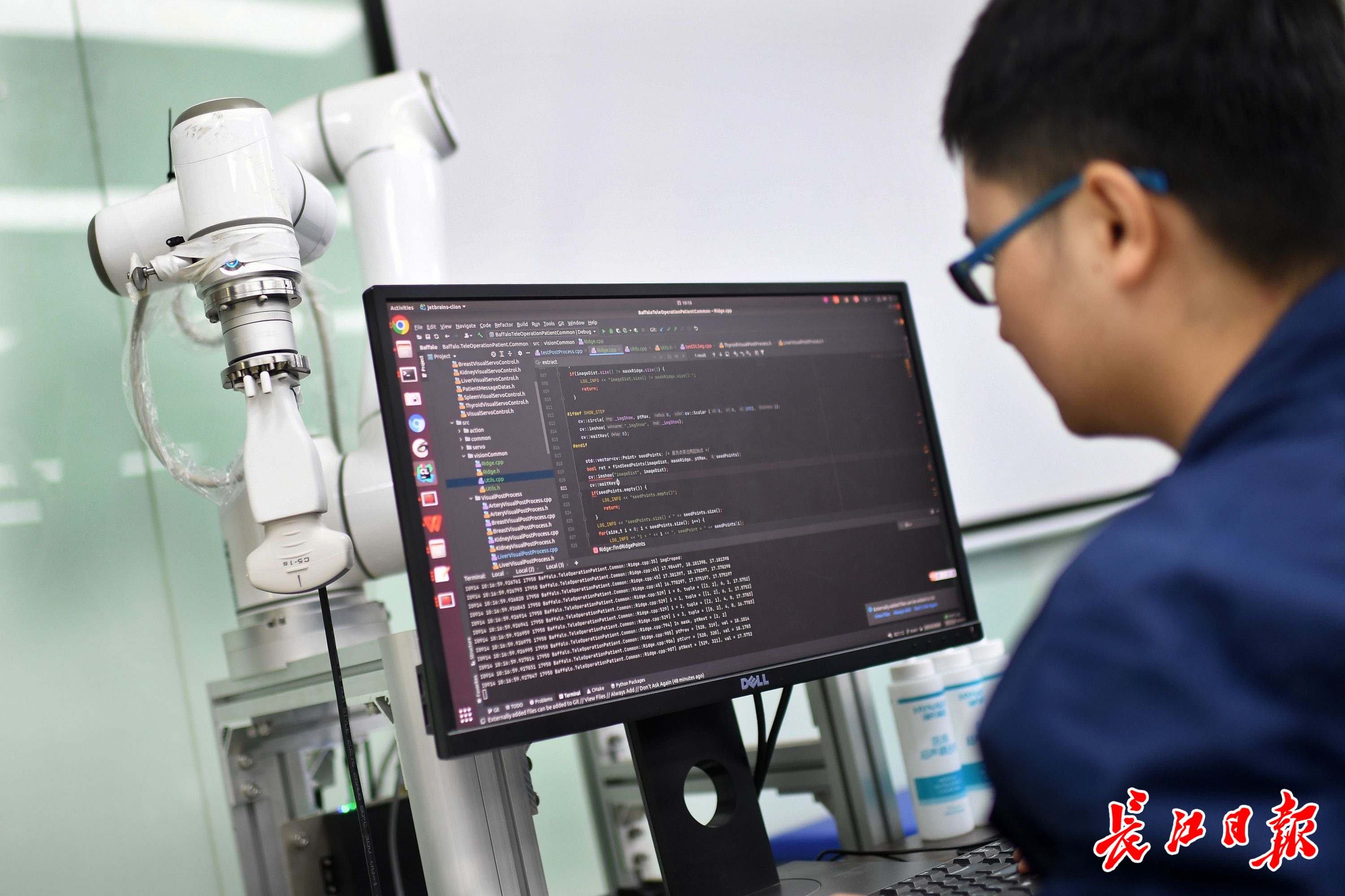 科研人员正对超声机器人的操作系统CobotSys进行代码调试更新。