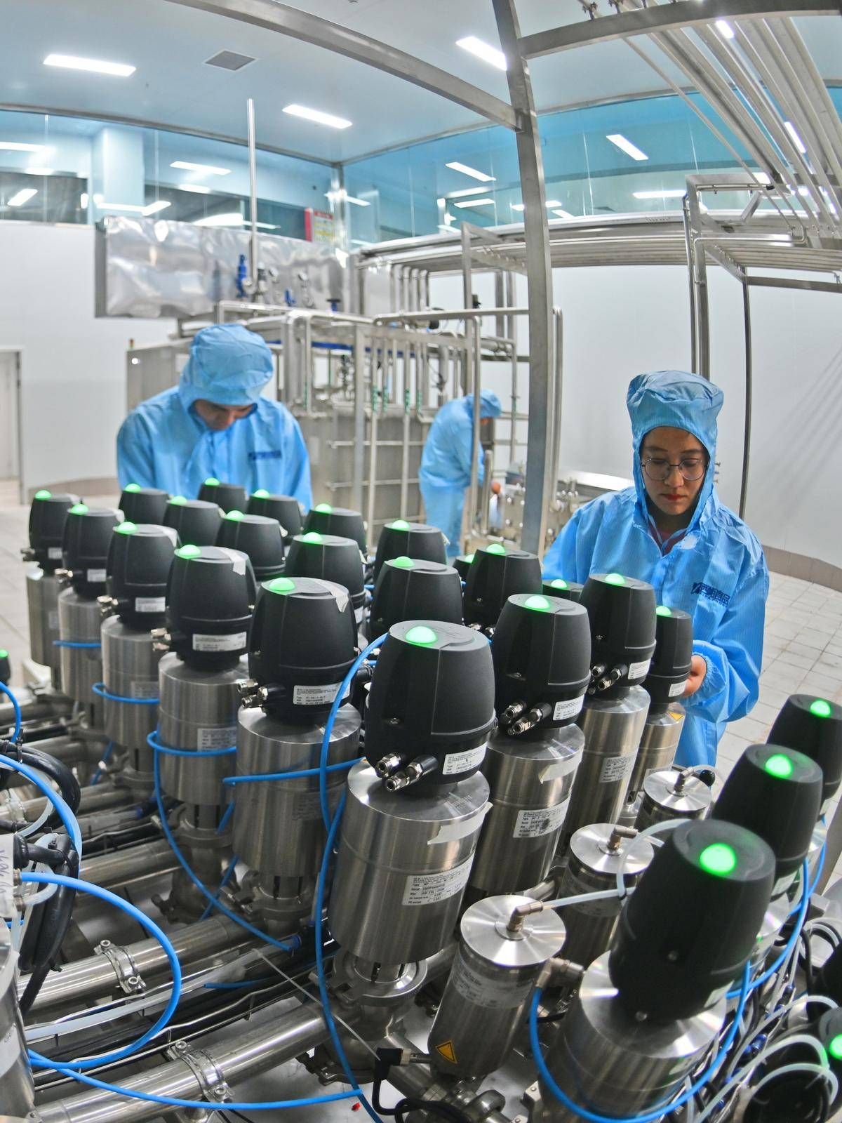 9月12日,员工在新疆西帕健康食品有限公司现代化的生产线巡查。这是2021年的援疆项目,于2022年动工建设。投产后,将生产蛋液类、蛋粉类、生物提取物等多种产品,每日可加工120吨鸡蛋。