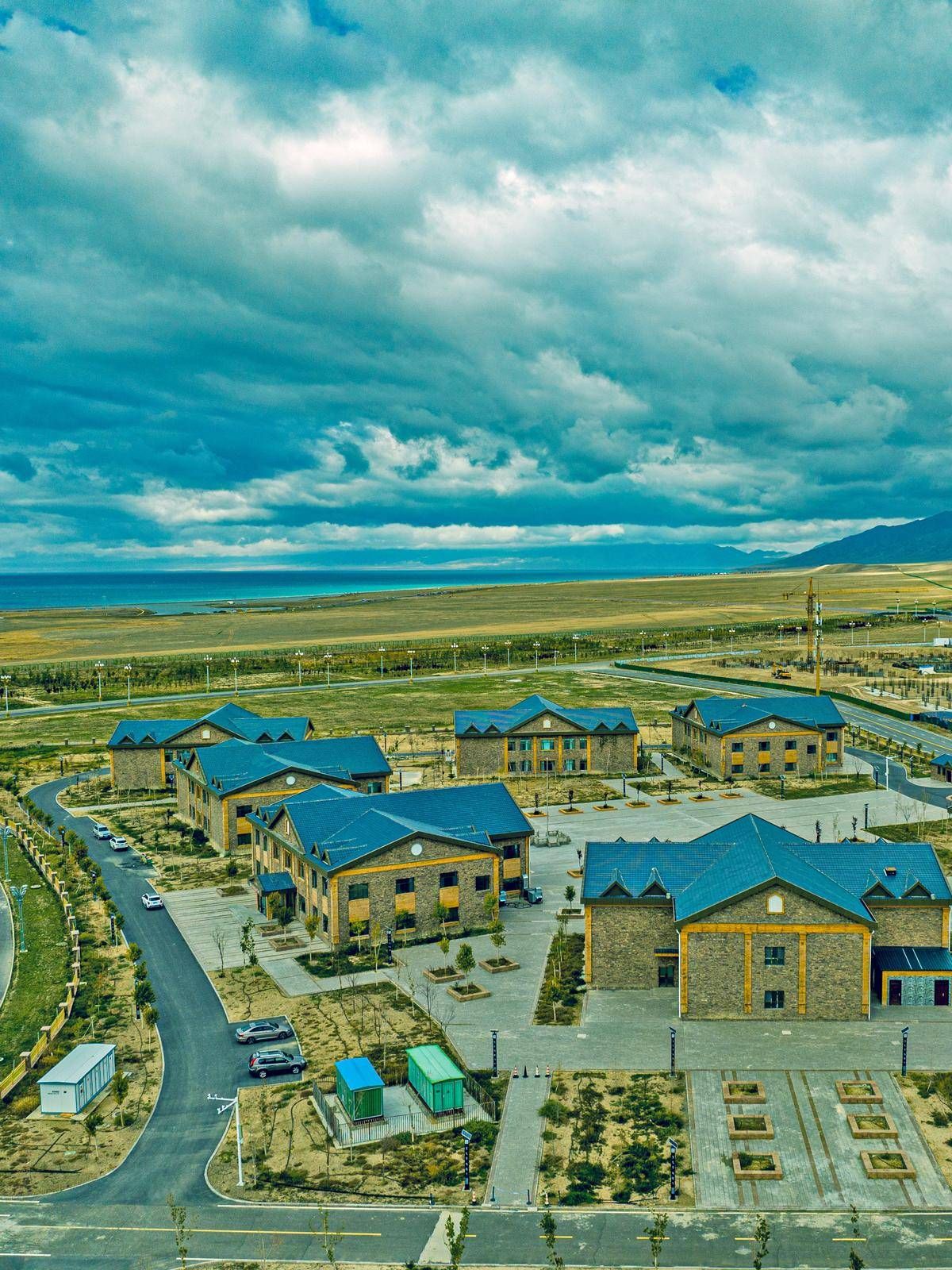 9月14日,远眺赛里木湖旁的博州职业技术学院(博职院)旅游学院。2005年以来,湖北省累计投入资金1.25亿元用于博职院软硬件建设;从50余所高校中,选派24批338人次援疆教师组团到学校支教。