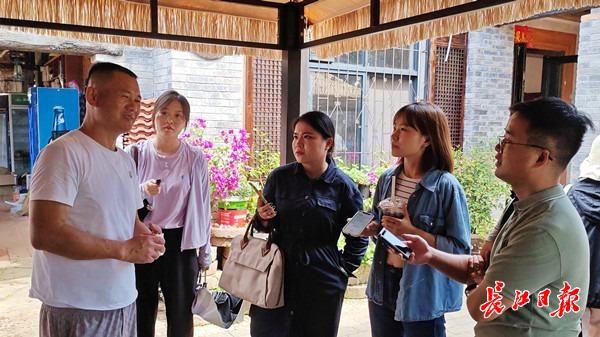 记者们采访农家乐店主。 记者唐婧妮 摄