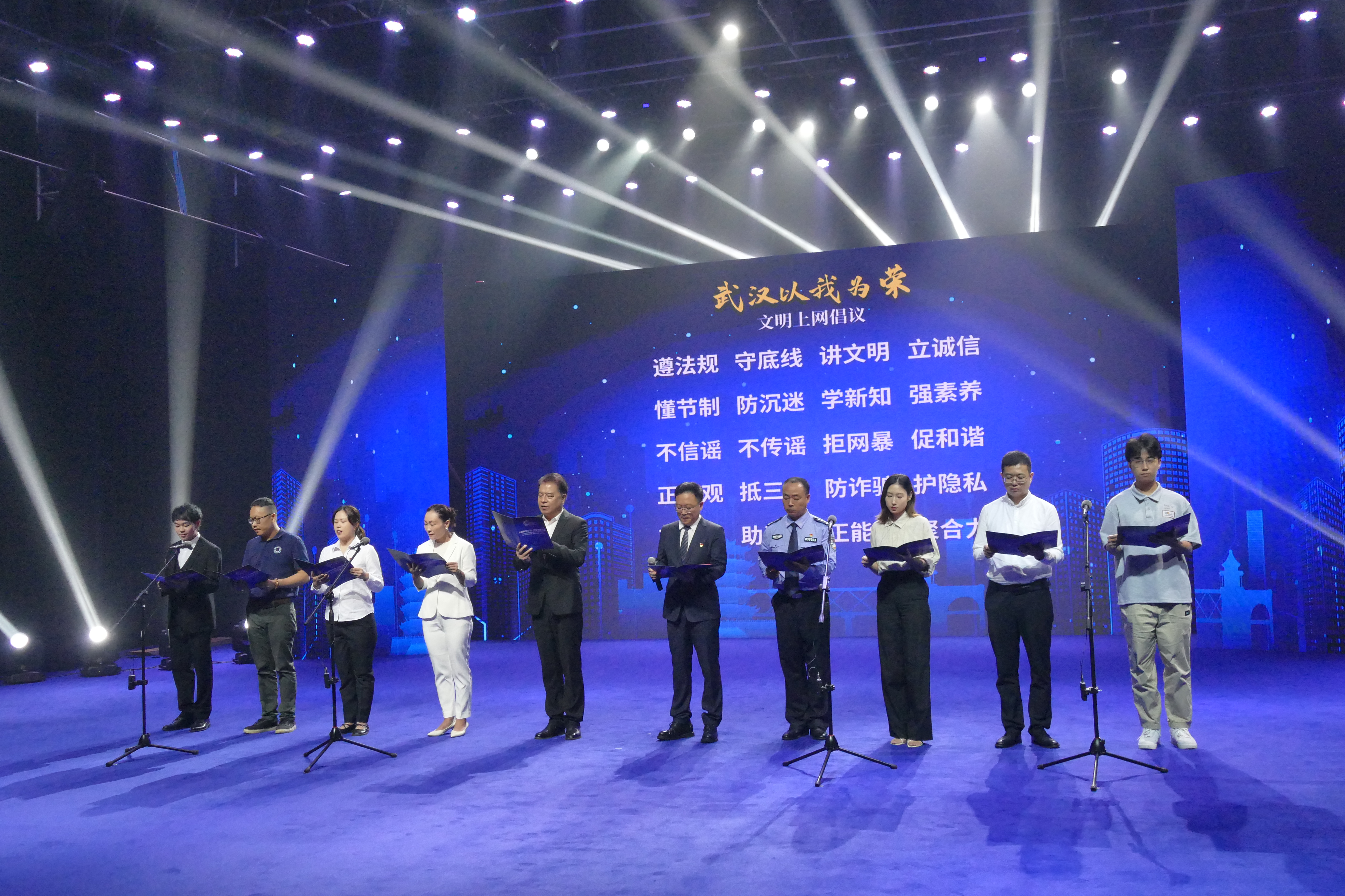 “文明上网,人人有责,网络不是‘法外之地’。”“加强网络安全防范,谨防电信诈骗!”“网络是我们共同的家园,让我们理性交流,拒绝谣言,尊重隐私,共建清朗、友善的网络环境。”“坚持依法上网,自觉抵制网络低俗之风。”“文明上网,传播网络文明,向网络沉迷说‘不’。”……在2023年武汉市国家网络安全宣传周启动仪式暨“武汉以我为荣·文明上网篇”发布活动现场,10位来自不同行业的网民代表向全市人民发起文明上网的倡议,汇聚成呼唤网络文明的强大声音。