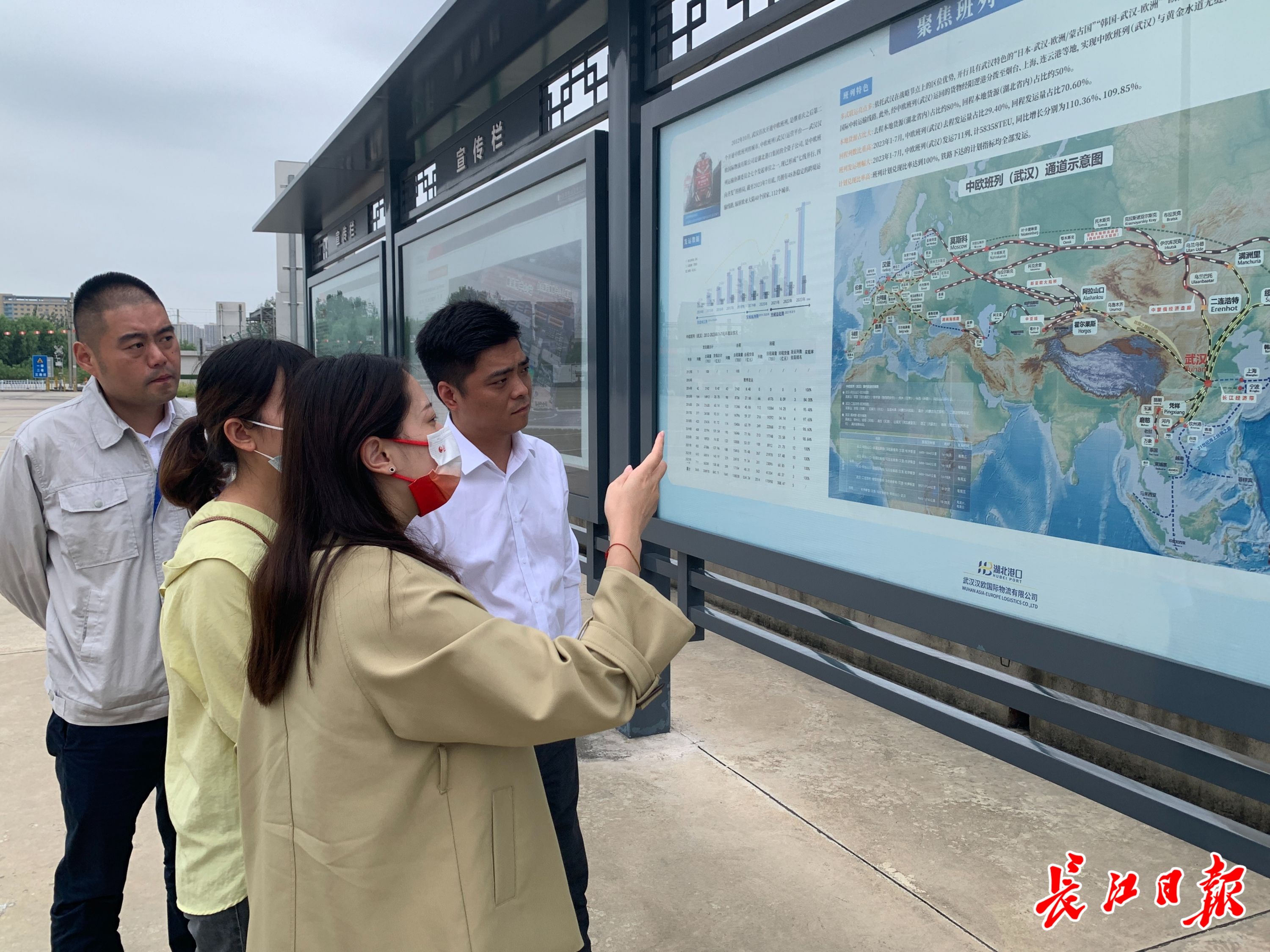“货物全、辐射广、容量大,走出去、引进来,武汉!”人民日报评论部政论研究室主编李拯聚精会神地聆听着中欧班列(武汉)的具体情况介绍,跟随着负责人的讲解,他用手描摹着悬挂在宣传栏上的“中欧班列(武汉)通道示意图”,随后在笔记上写下了这样一句话。