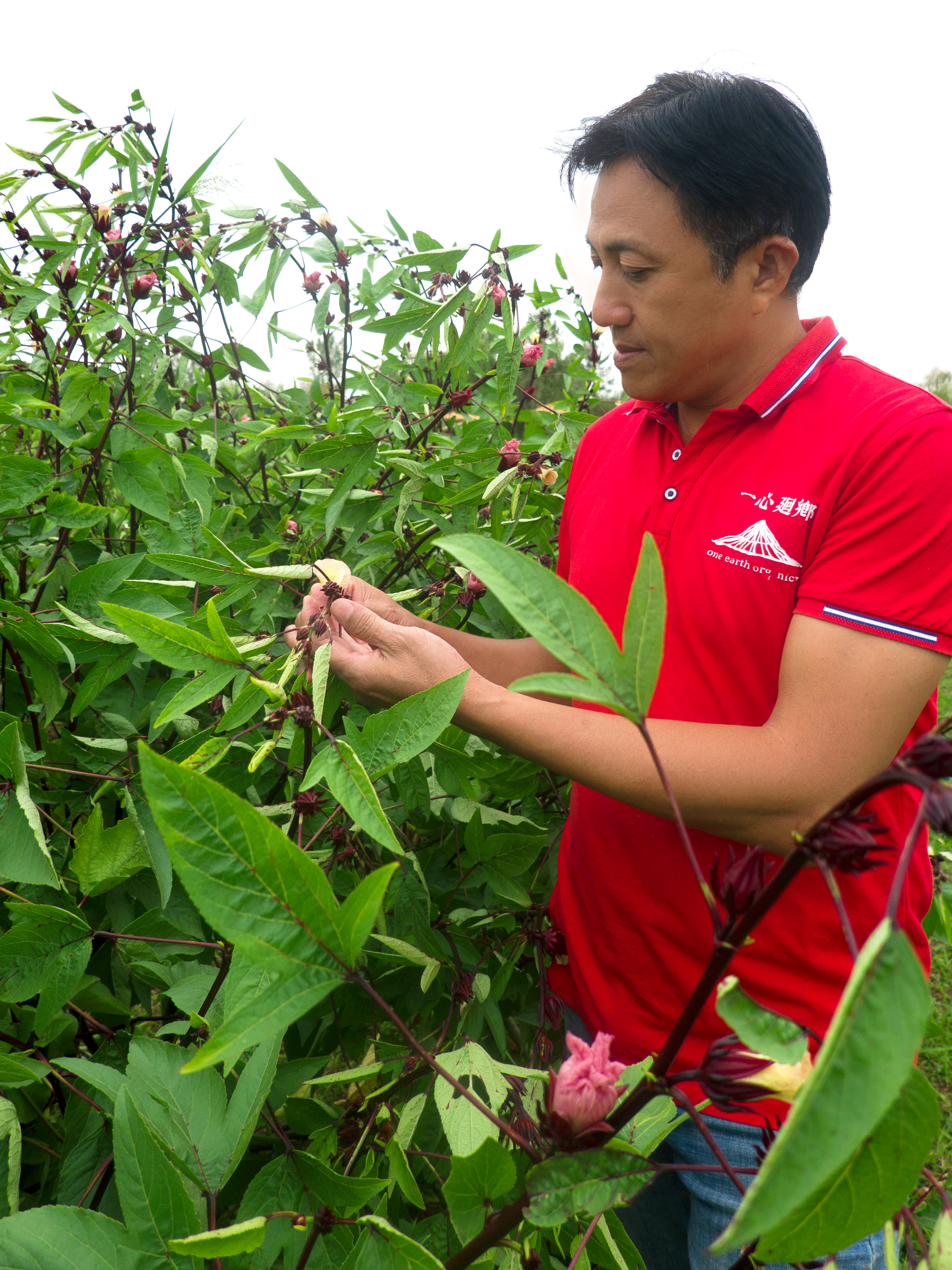 “一心回乡”生态农场负责人蔡三益正在农场的洛神花种植基地劳作。黄陂区融媒体中心 黄雨薇 摄