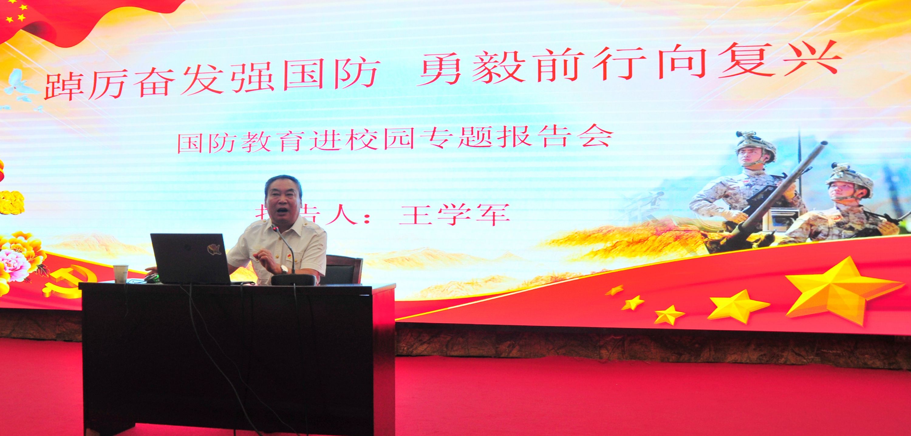 “强国先强军!”军休干部黄友牛以“增强国防意识,逐梦强军目标”为主题,从注重南海、台海安全,确保国防安全和国家统一等方面对目前国家安全形势进行了解析。