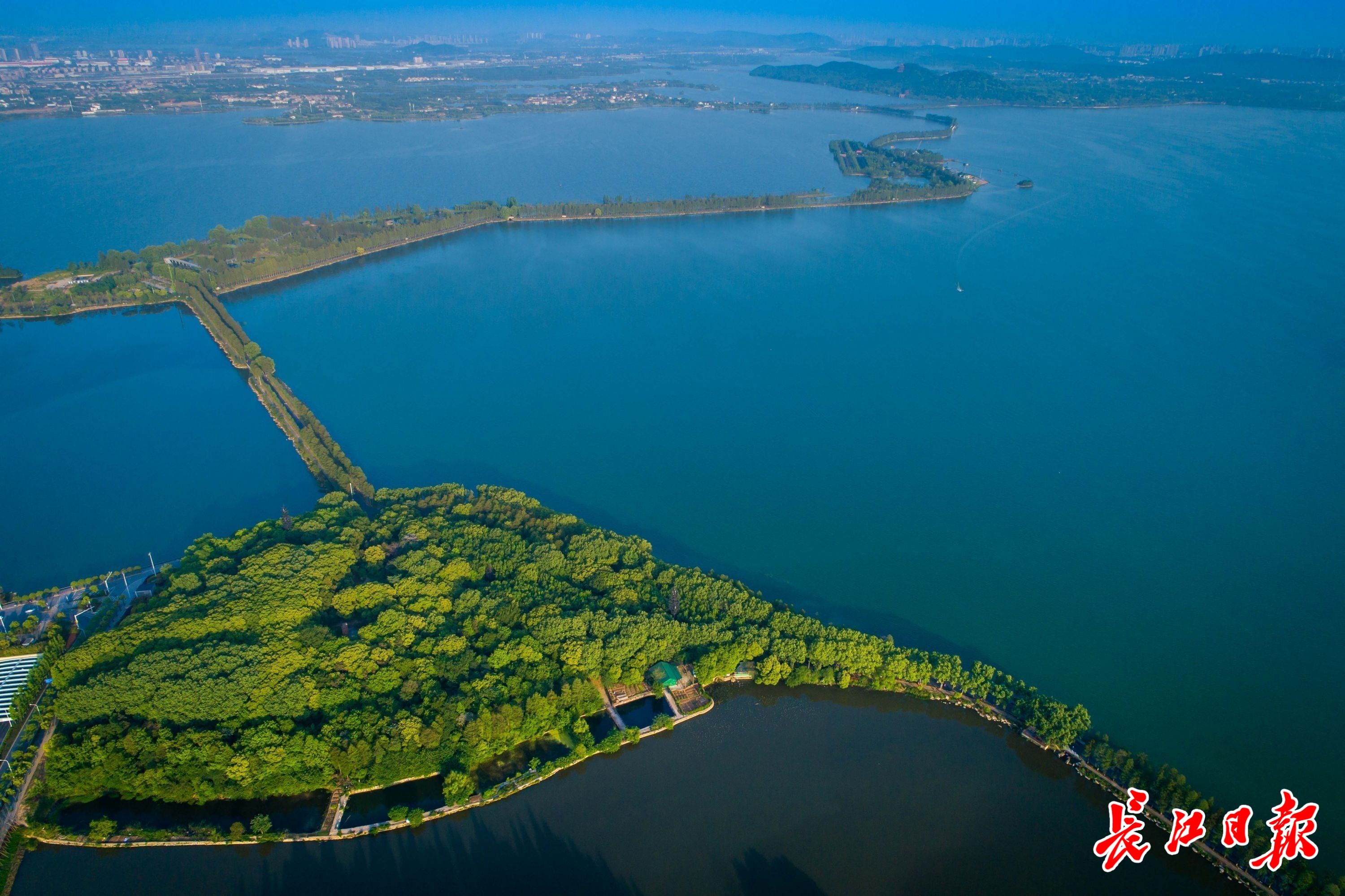 东湖绿道碧水环绕宛若城市的绿肺。 长江日报记者任勇 航拍(资料图)