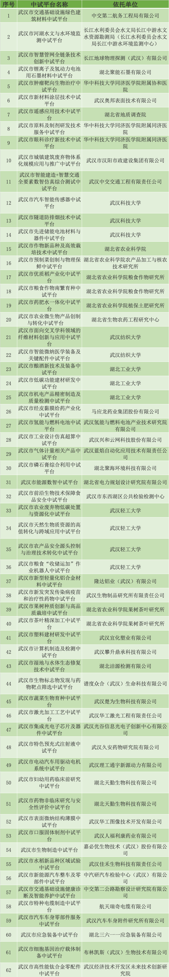9月,武汉市科技局公布了2023年我市科技成果转化中试平台(第一批)备案名单,62家平台入选。