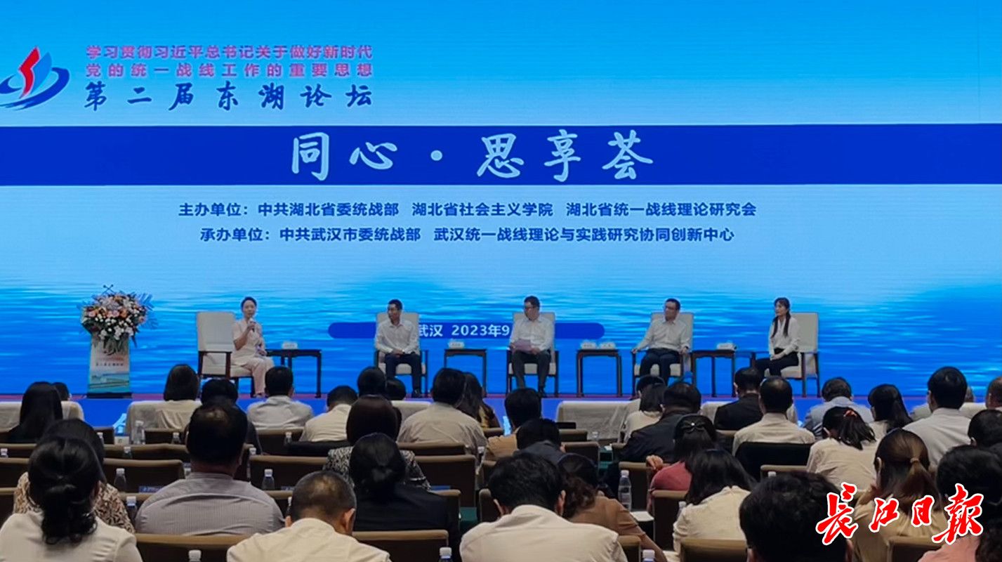 长江日报大武汉客户端9月25日讯(记者汪甦 通讯员周凡)9月25日,作为第二届东湖论坛的分论坛,“同心∙思享荟”专场活动在汉举办。围绕“第二个结合·统一战线的文化力量”主题,上海市委统战部宣传处处长封丹华,市委统战部副部长、市社会主义学院党组书记王磊等4位嘉宾现场交流。专场活动由武汉大学政治与公共管理学院教授、九三学社武汉市委员会副主委上官莉娜主持。