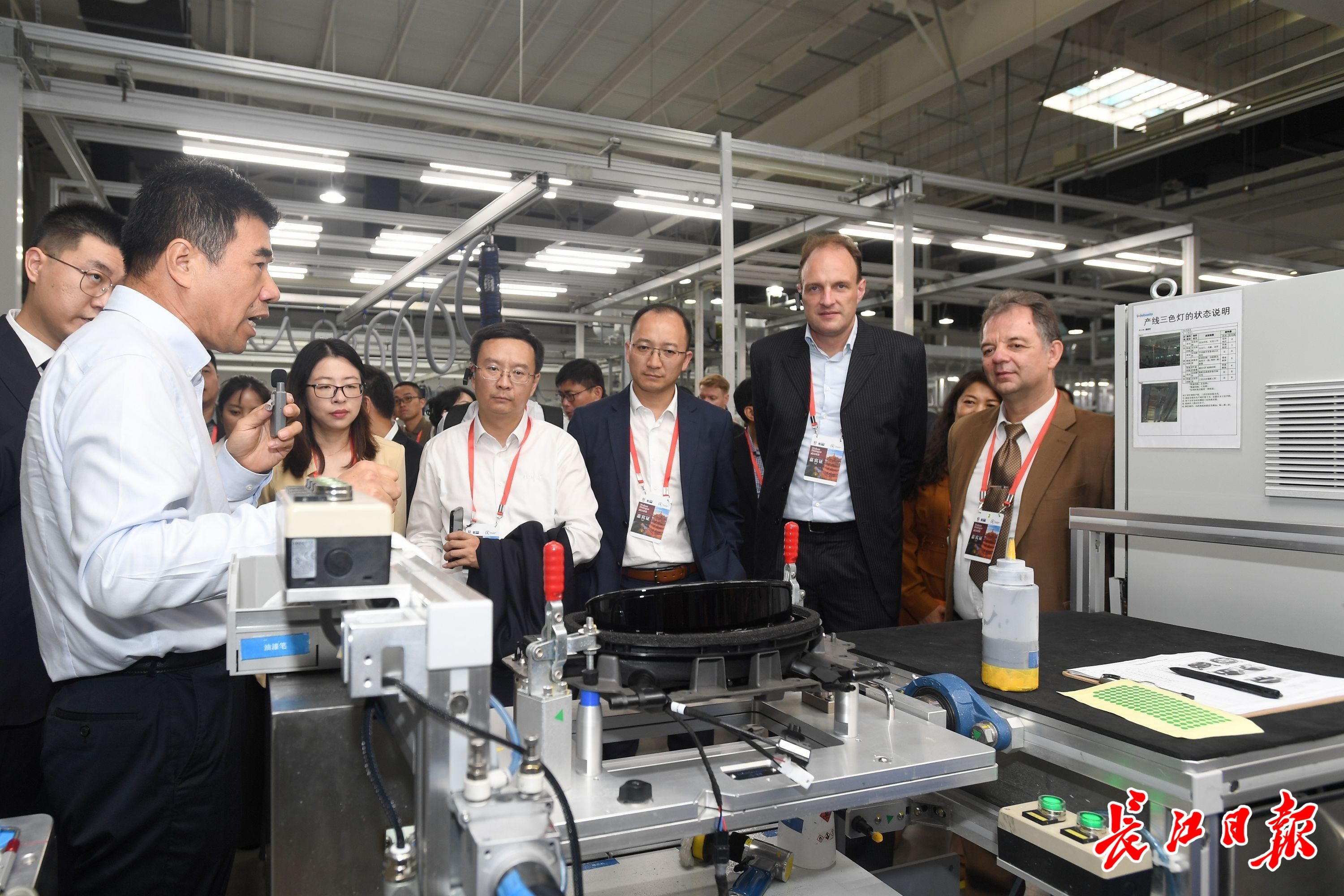 长江日报大武汉客户端9月27日讯 9月26日下午,由70余人组成的德国企业代表团访问武汉,走进武汉中德国际产业园。在知名德企伟巴斯特全球最大生产基地伟巴斯特武汉工厂,一条可升降式车顶传感器模块生产线吸引了代表团成员的关注。