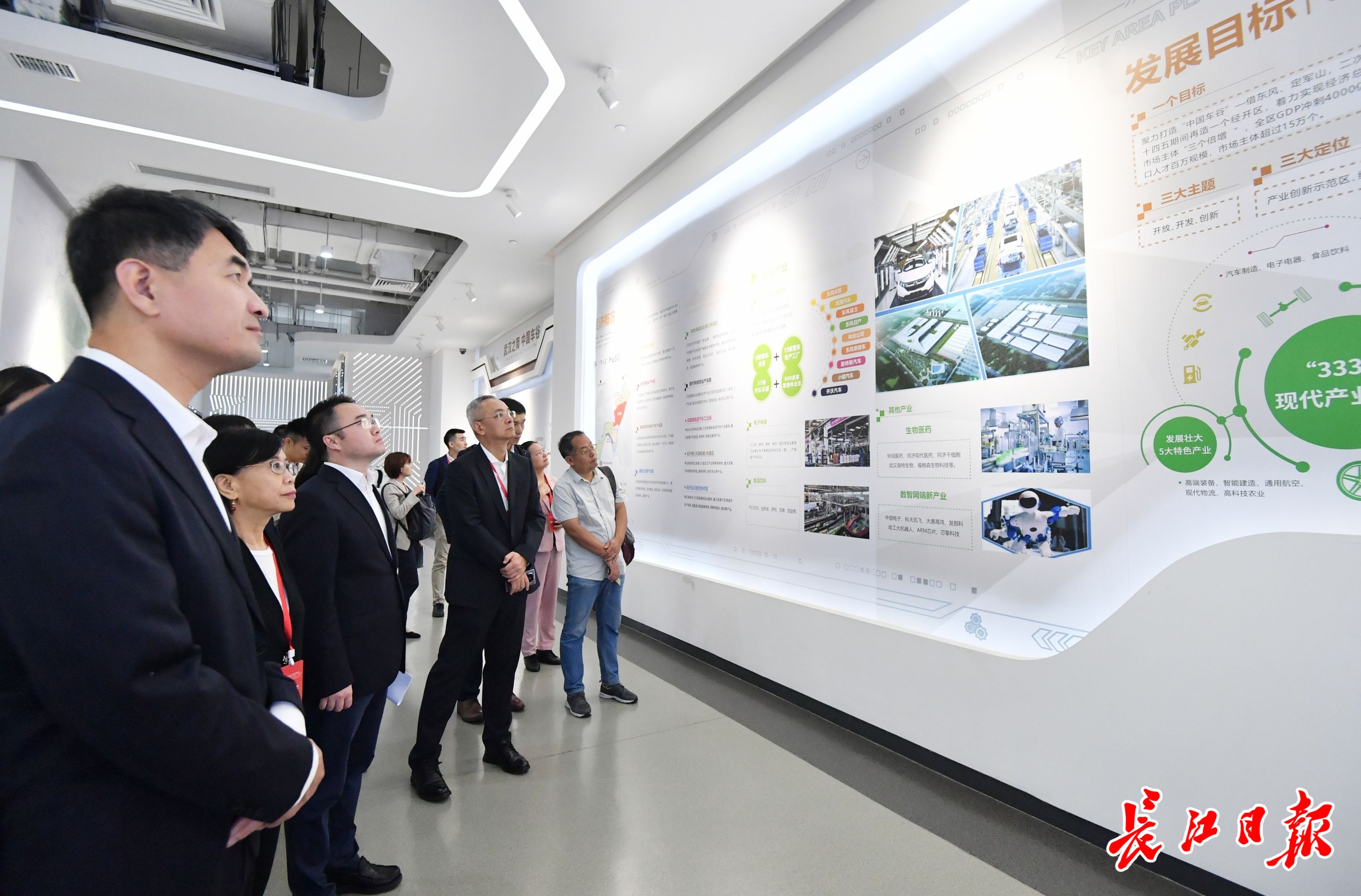 “2022年有100万辆汽车从武汉经开区驶向全球,单区产量位于全国前三……”在武汉经开区,数十位在华美企高管走进武汉新能源与智能网联示范区,实地考察武汉汽车及智能制造产业,“双智”展厅内展出的各类芯片、发动机、整车展品等引起了他们的极大兴趣。