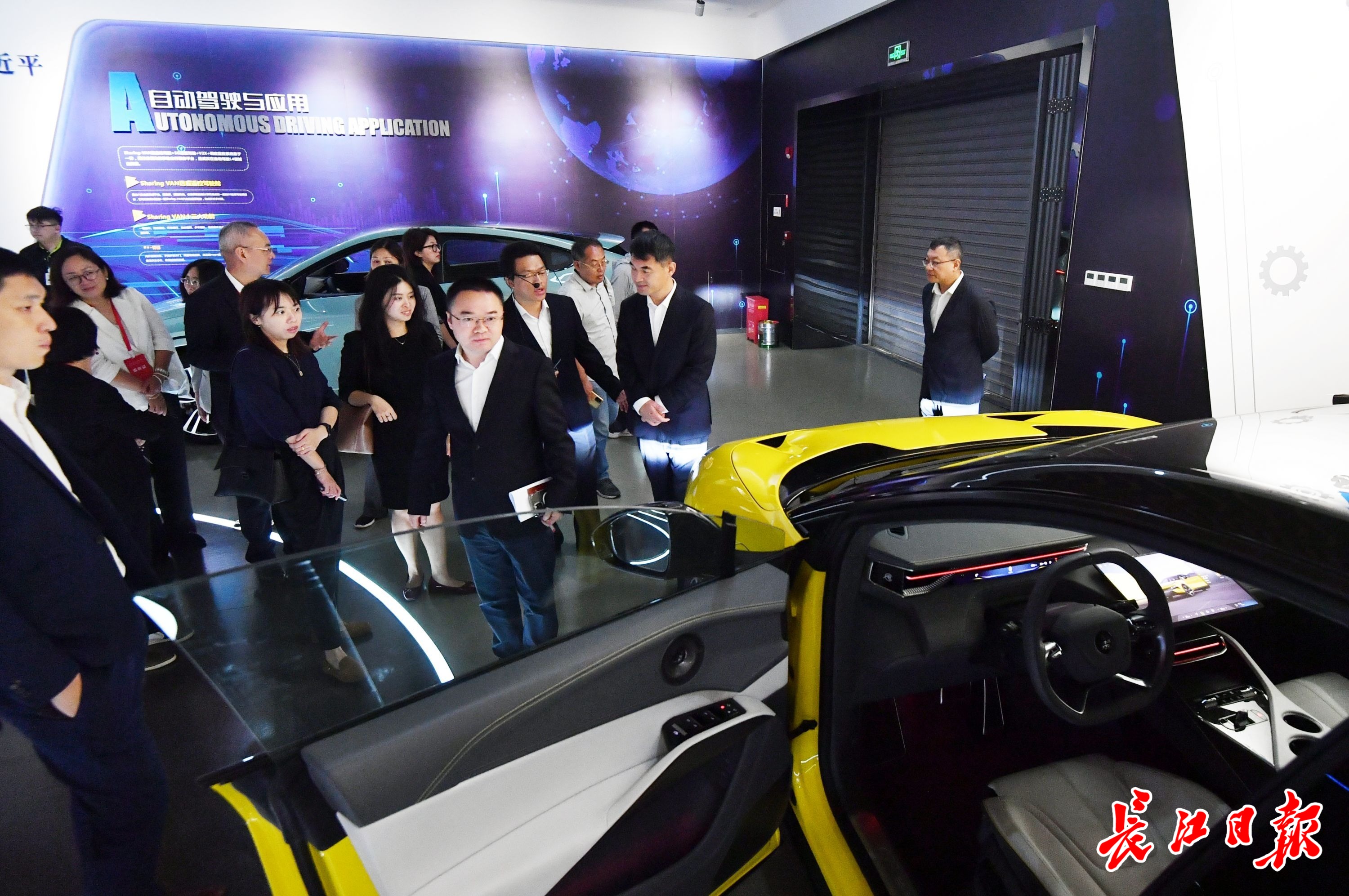 图为美国在华跨国企业代表在国家智能网联汽车(武汉)测试示范区参观调研。长江日报记者 喻志勇 摄