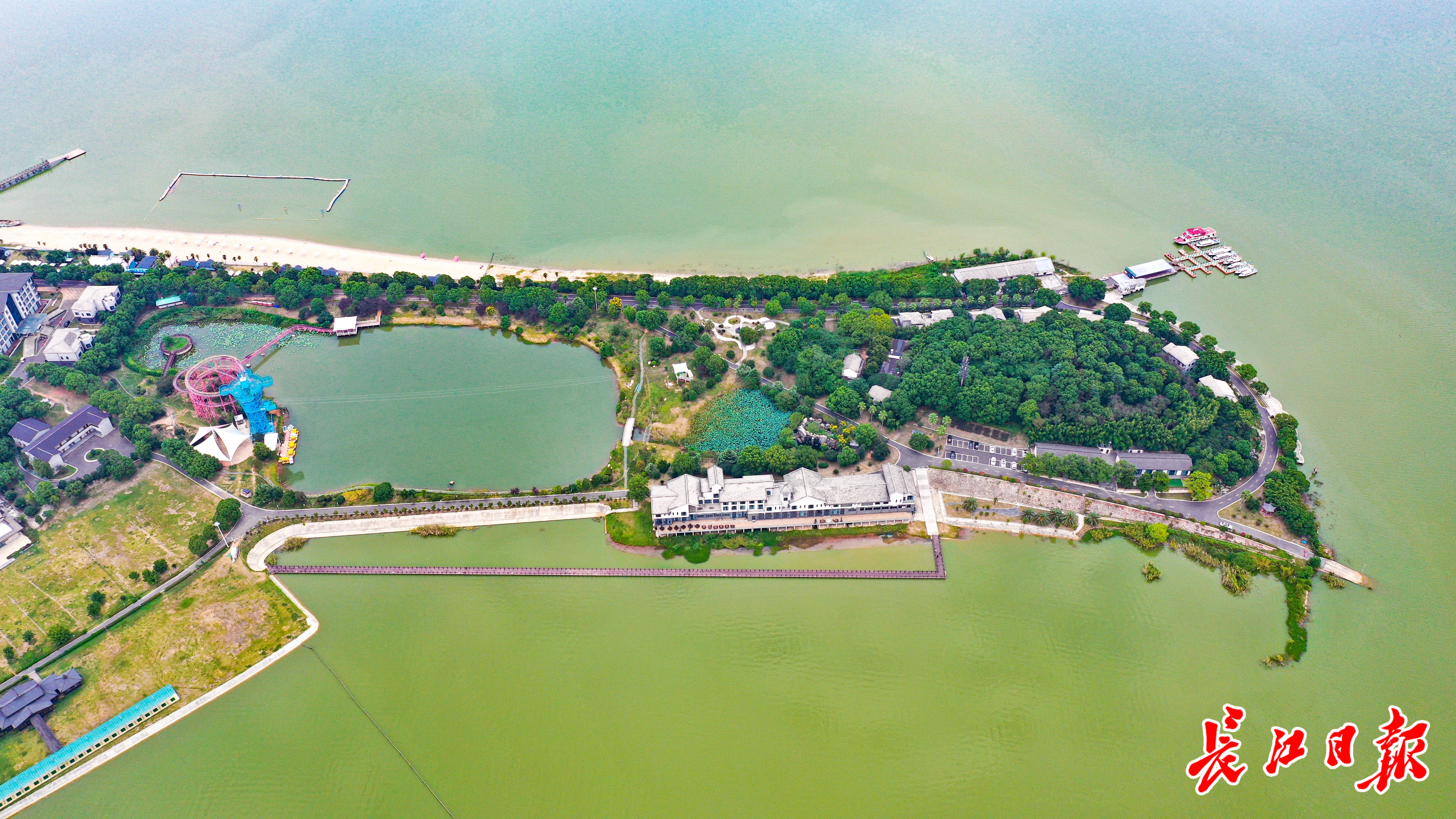 “来这里工作后,我最直观的感受就是每天晚上拍夕阳,每一天晚上的夕阳都不一样,都特别的漂亮,在这里航拍也特别漂亮。”李云表示,梁子湖龙湾半岛景区依水而建,在运营过程中十分注重对梁子湖水资源的保护与合理利用。沿湖餐吧、亲水步道、湖畔摩天轮、拍照打卡点位……在给游客创造亲水体验与观景娱乐的同时,景区也不忘生态优先的理念,努力实现生态保护与经济效益的“双丰收”。
