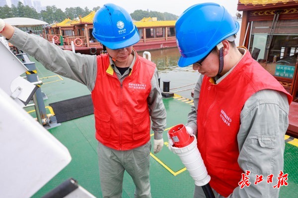 今年“双节”黄金周,国网武汉供电公司为东湖游船装配的“智能岸电”全面启用。记者胡冬冬 通讯员王欣