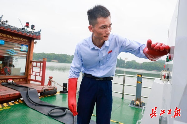“以前,游船充电只能在晚上非营业时段,现在,随时可充,更灵活方便了。”王艺明介绍,2019年初,东湖游船实现了全电能化营运,但当时安装的充电设备功率小、充电慢,一艘游船充满电需要10小时以上。“智能岸电”功率可达单枪80千瓦,相当于1小时可充80度电,游船从20%电量充到80%只需要4小时,充电时间相比原来缩减了一半,并支持随时补电,令游船运营效率提升了1倍。“充电设备升级了,运营效率提升很可观,楚风园码头日接待最大游客量从6000人次升至1.6万人次。‘双节’黄金周首日,楚风园码头接待游客6000余人次,运营平稳有序。”
