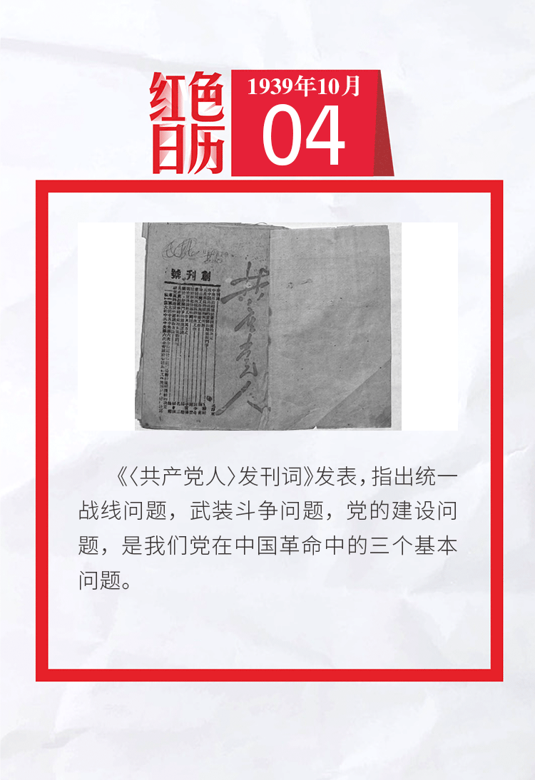 1939年的今天,《〈共产党人〉发刊词》发表|红色日历 ©原创 2023-10-04 14:58 0 图片来源:河北省档案馆 藏 《人民政协报》发 (整理:喻鑫 设计:陈昌 制作:张莉) 【编辑:赵可】
