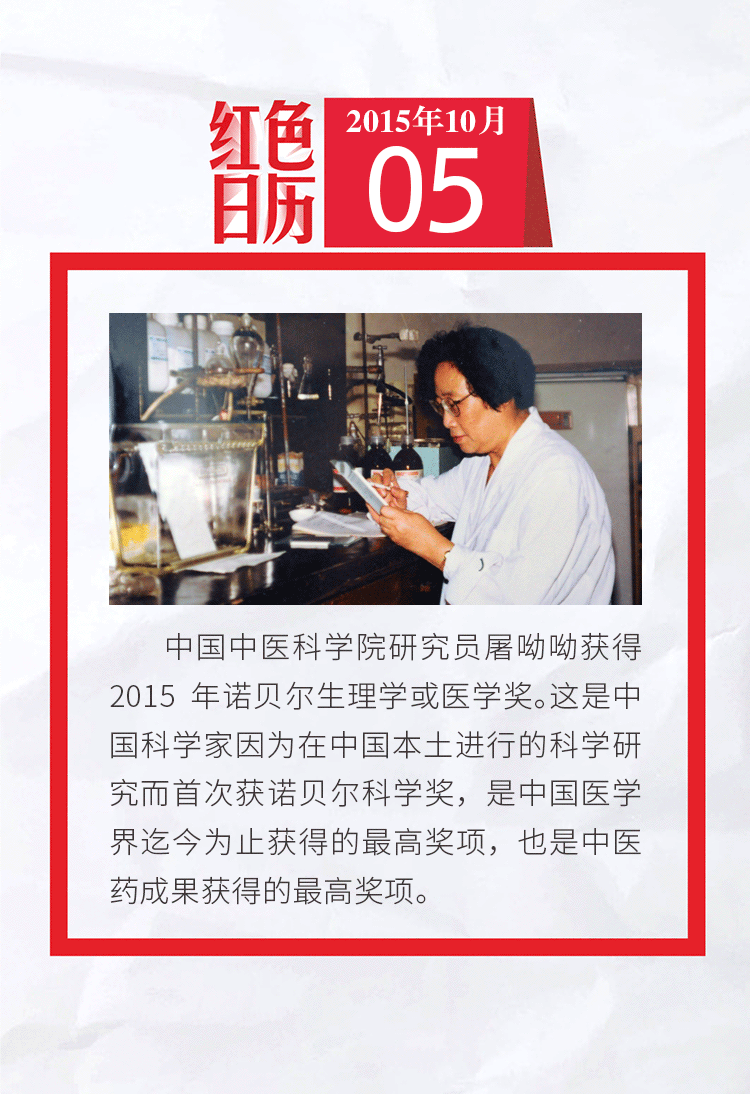 2015的今天,屠呦呦获2015年诺贝尔生理学或医学奖 |红色日历