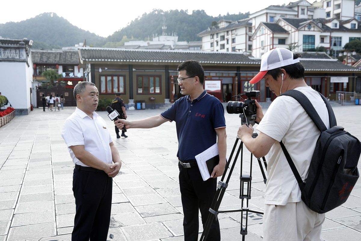 “沿着长江读懂中国——万里长江行”主题宣传推广活动探访调研团走进遵义会议纪念馆,遵义会议纪念馆副馆长张小灵接受记者采访。探访调研团员王筝 摄