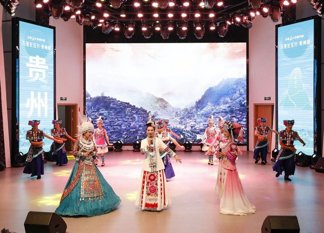 “沿着长江读懂中国——万里长江行”主题宣传推广活动贵州段启动式上,贵州民族歌舞艺术家展现多彩贵州的人文风采。探访调研团员王筝 摄