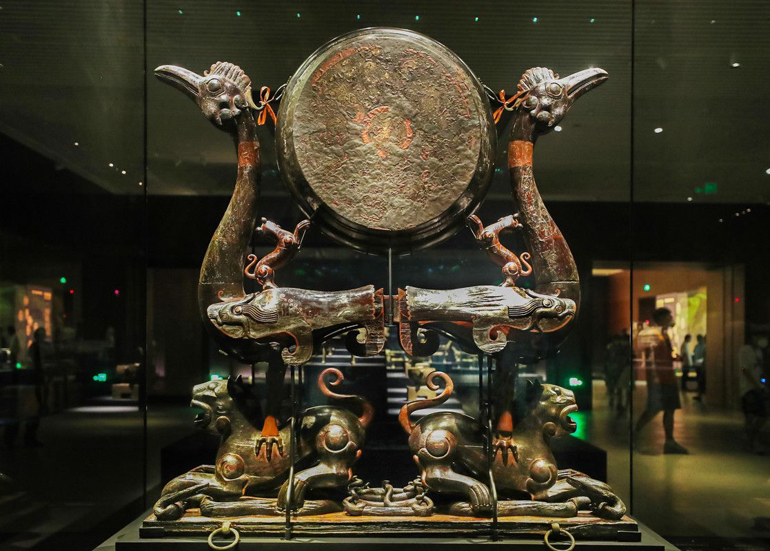 收藏于湖北省博物馆内的虎座鸟架鼓,是该馆的“十大镇馆之宝”之一,呈现出灵动之美,彰显了荆楚文化的浪漫与神奇。探访调研团员王筝 摄