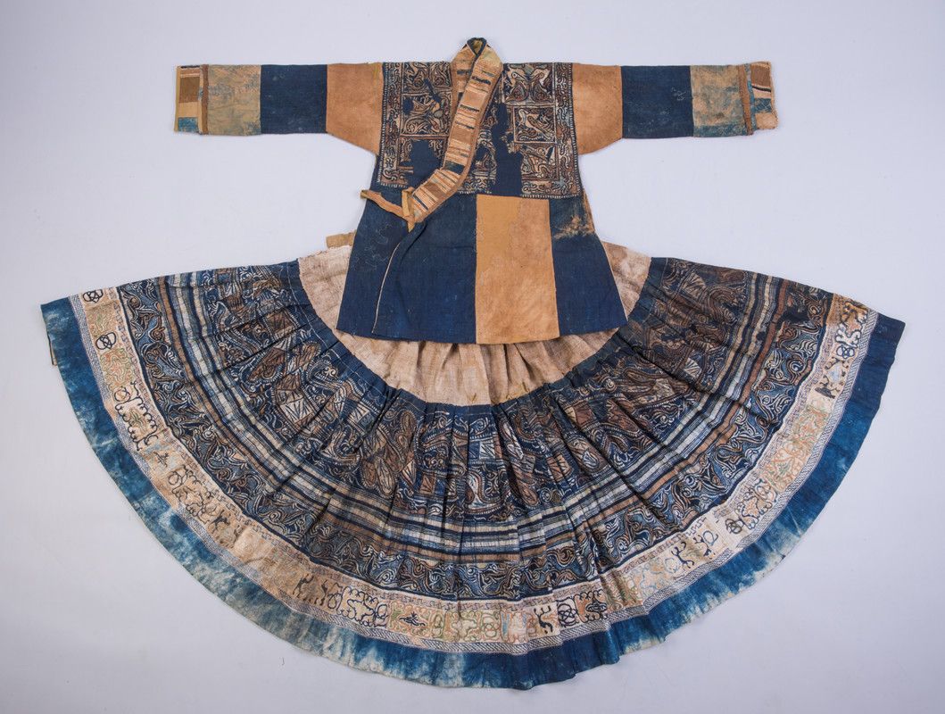 贵州博物馆内珍藏的宋朝鹭鸟纹彩色蜡染褶裙,是一件集挑花、刺绣、蜡染诸种工艺于一体的艺术珍品。探访调研团员王筝 摄