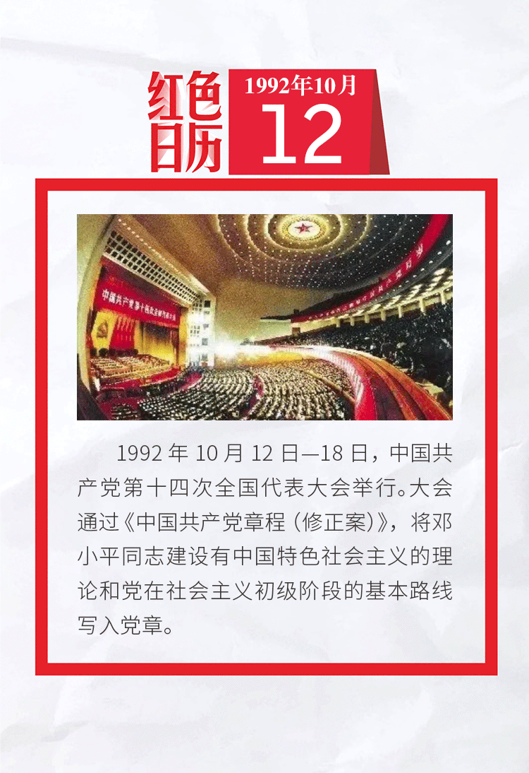 1992年的今天,中国共产党第十四次全国代表大会举行|红色日历