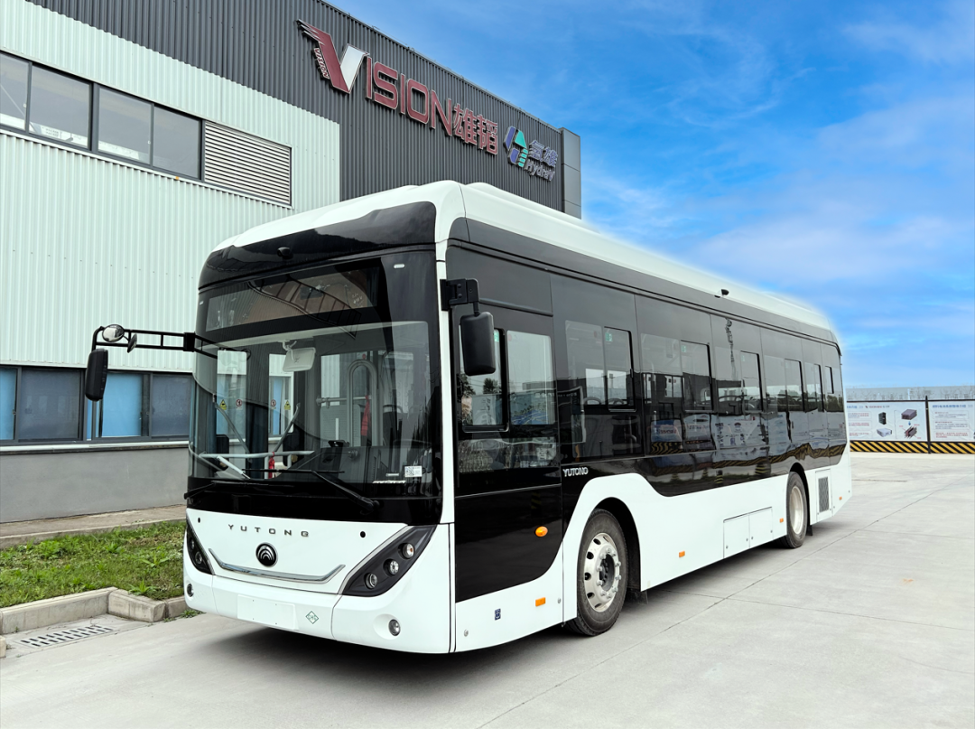 搭载着雄韬氢雄自主研发氢燃料电池发动机系统的氢能公交车。 通讯员供图