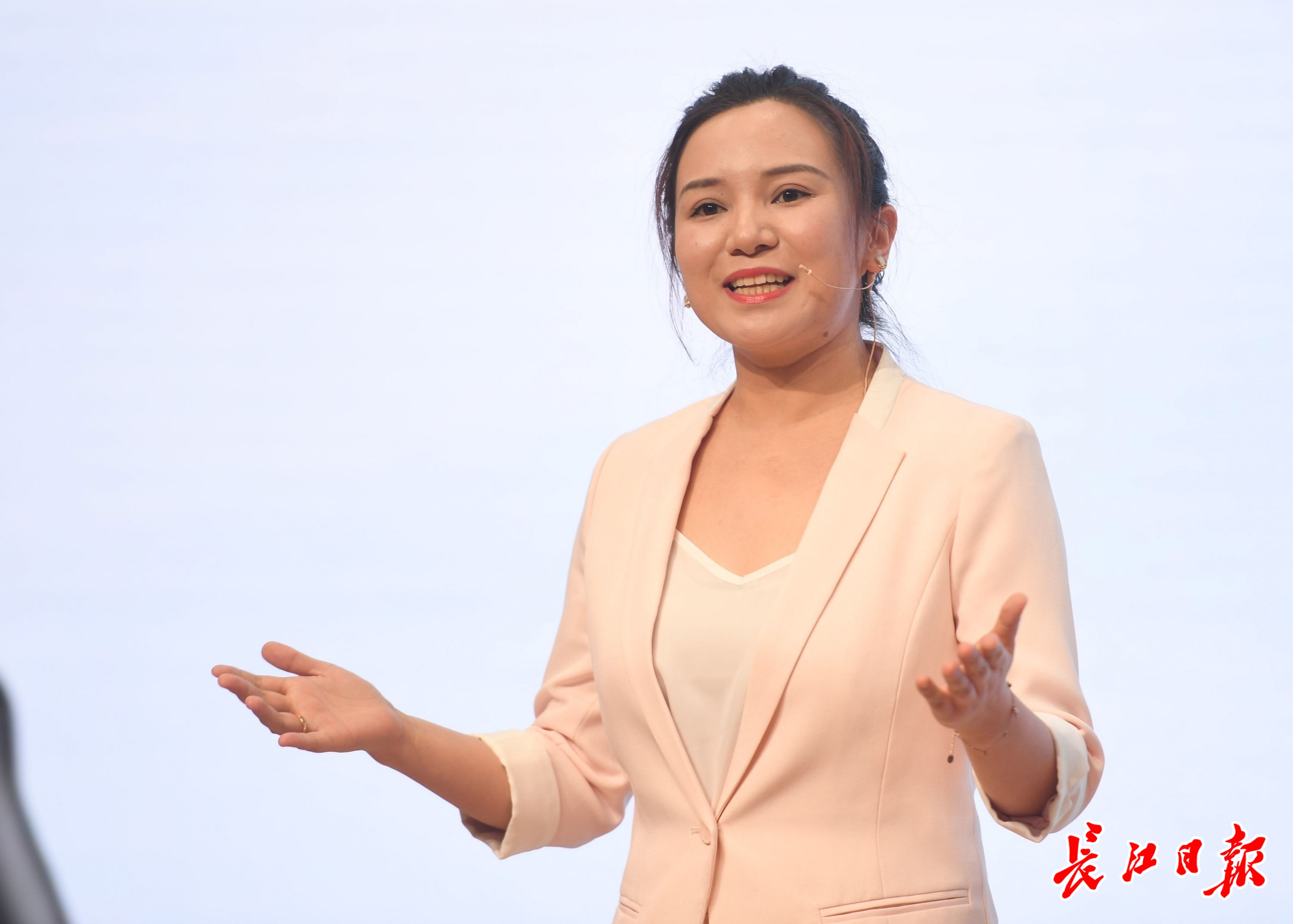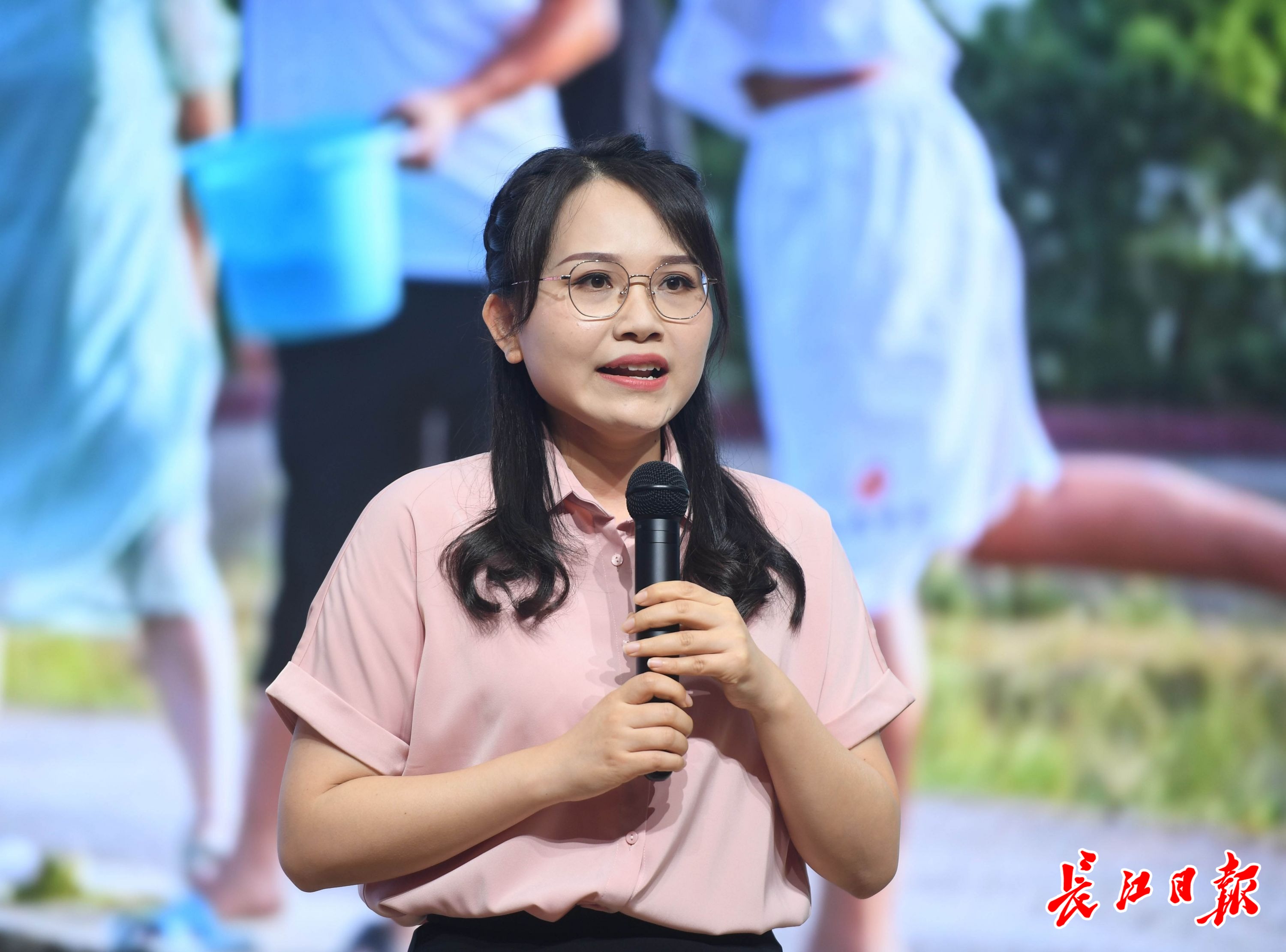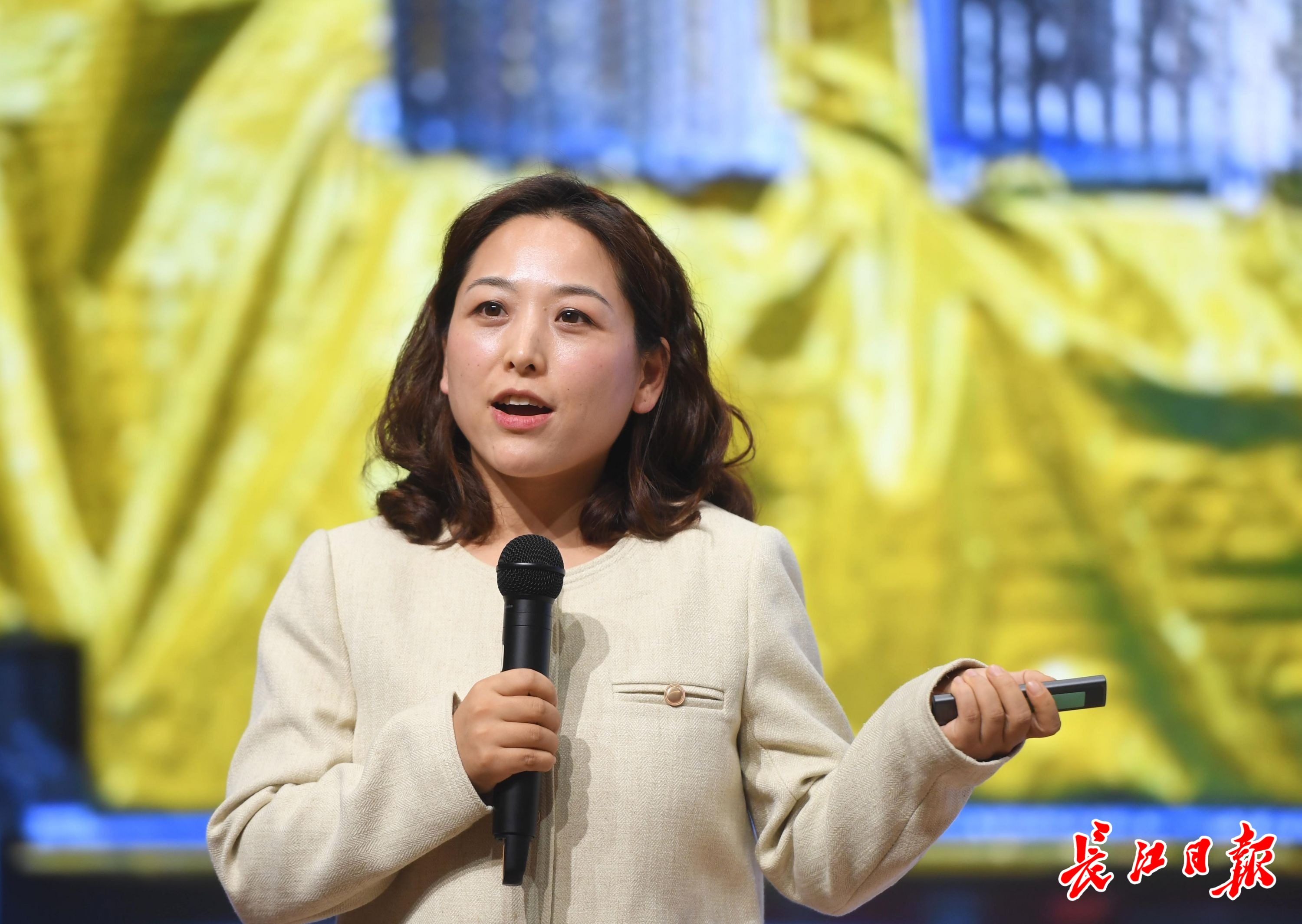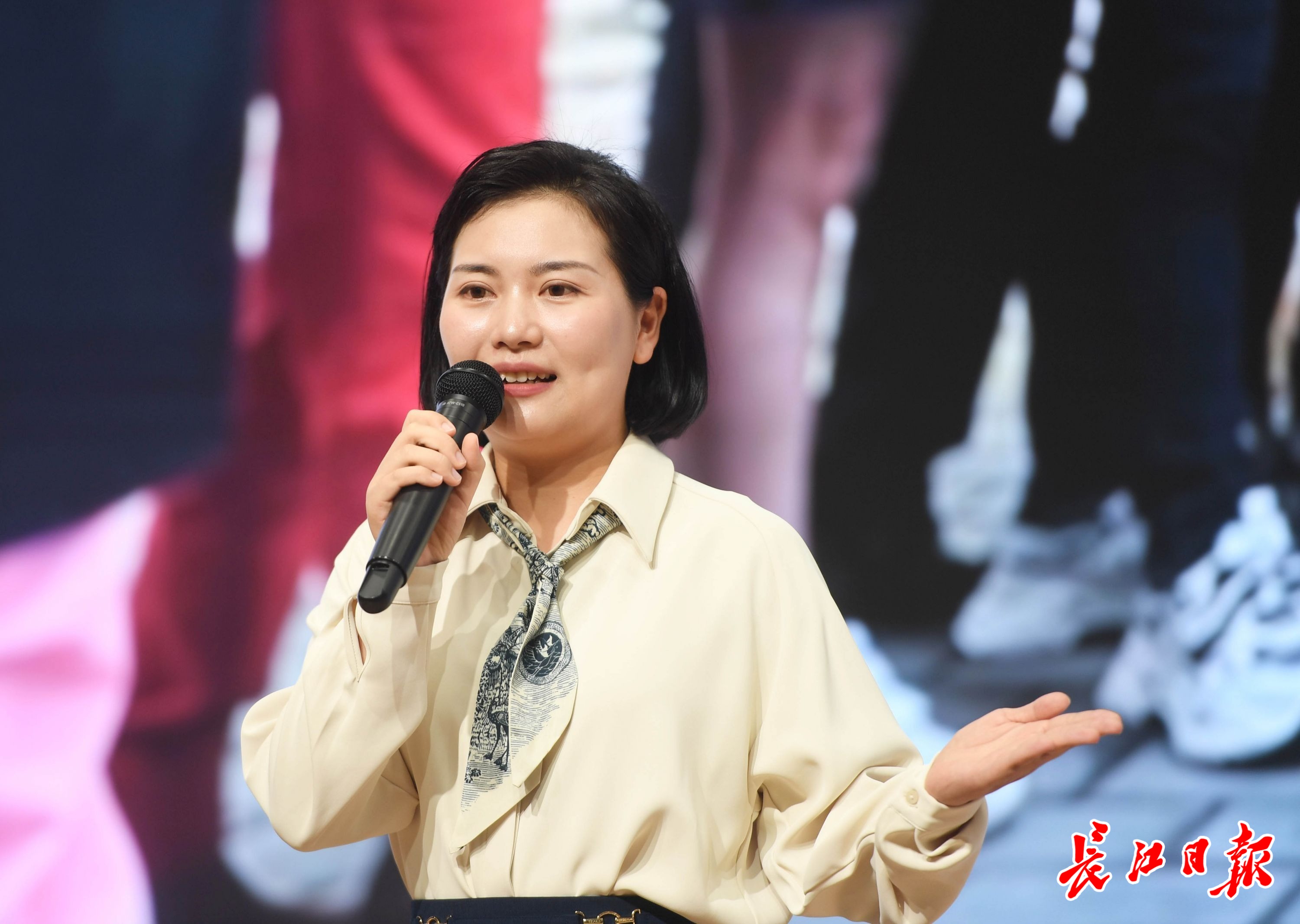 来自蔡甸区融媒体中心的赵慧现场讲述优秀的同事如何坚守岗位、勇毅前行;