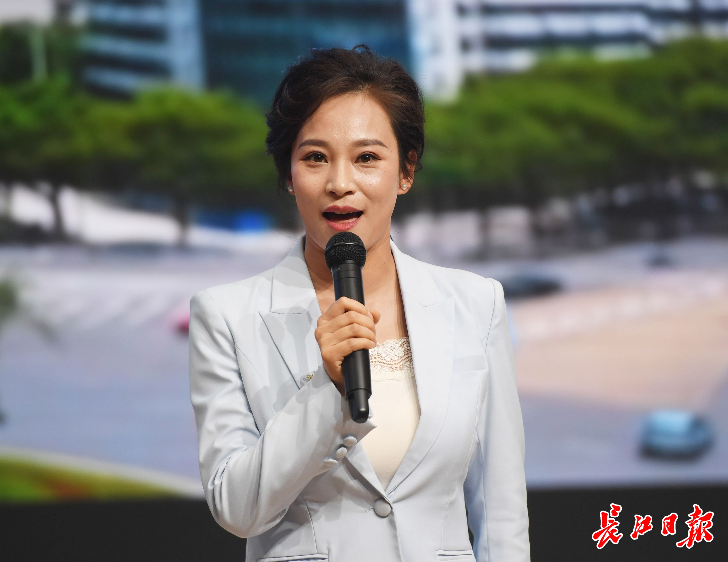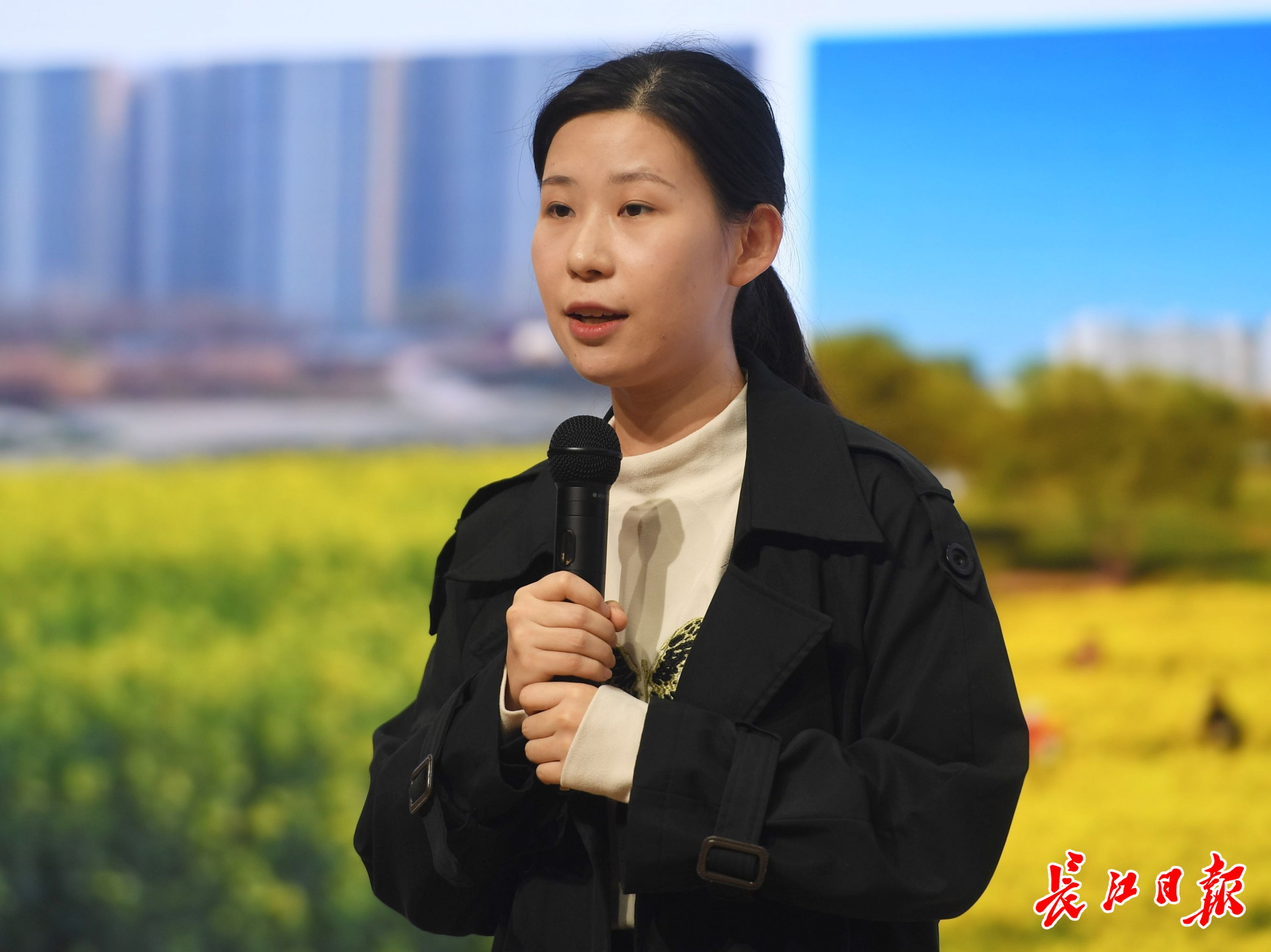 江夏区融媒体中心的杨莹。记者高勇 摄